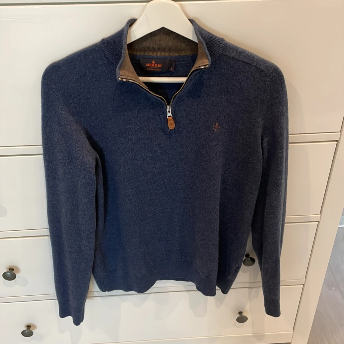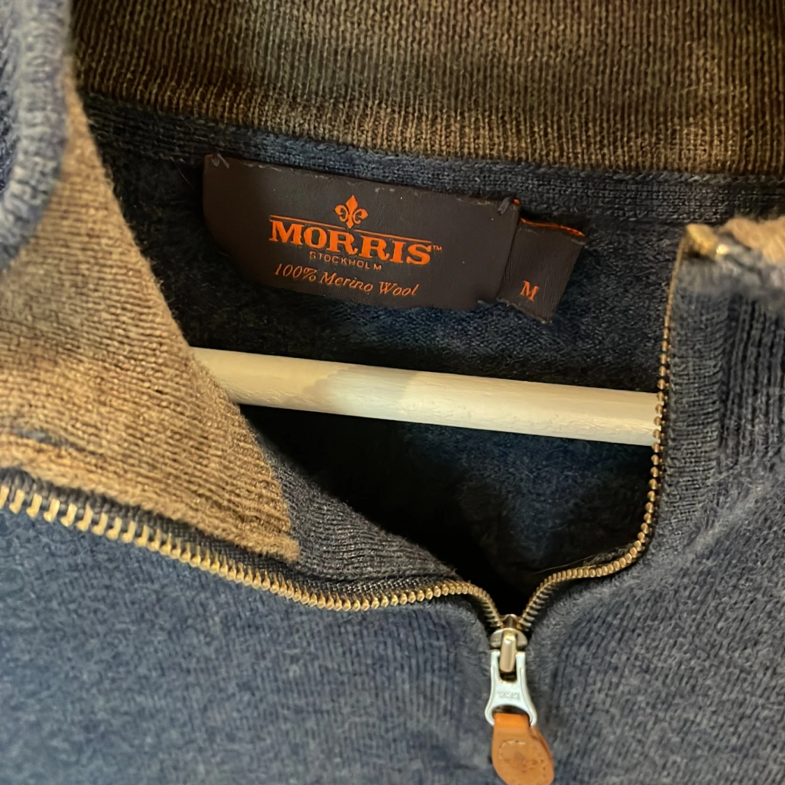 En Morris zip tröja i storlek M men sitter som en S, tröjan är i 100% merinoull och är extremt skön. Nypris ligger på 1599kr