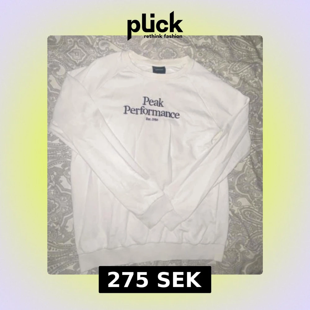 Säljer en vit sweatshirt från Peak Performance med svart logga ganska schyst inga märken osv jättechill bekväm tröja
