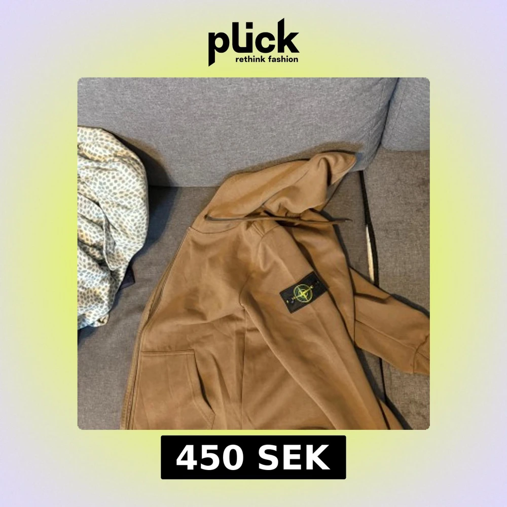 Säljer en snygg beige hoodie från Stone Island med klassisk logga på ärmen. Tröjan har huva med dragsko och känguruficka framtill. Tillverkad i mjuk bomull, perfekt för chill dagar. Stilsäker och enkel att matcha med jeans eller joggers.