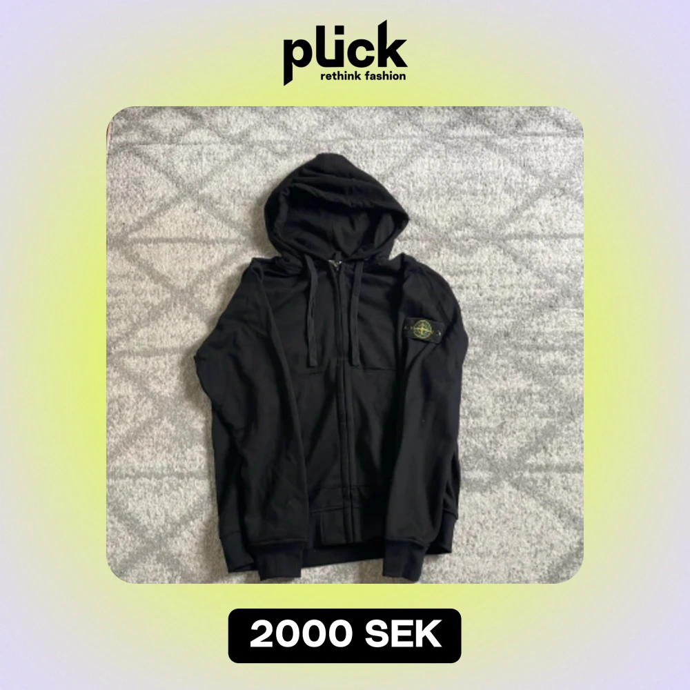 Skit snygg Stone island zip hoodie i svart helt perfekt skick använd typ 3/4 gånger sitter jättebra på kroppen och är skit snygg med allt!