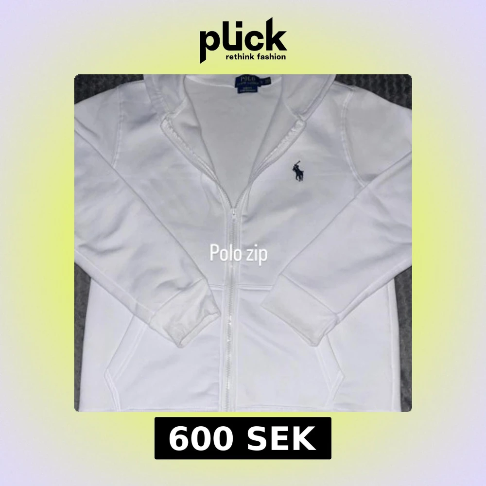 Vit hoodie från Polo Ralph Lauren med dragkedja och klassisk blå logga på bröstet. Tröjan har huva, långa ärmar och två fickor framtill. Perfekt för chill dagar och enkel att matcha med jeans eller joggers.