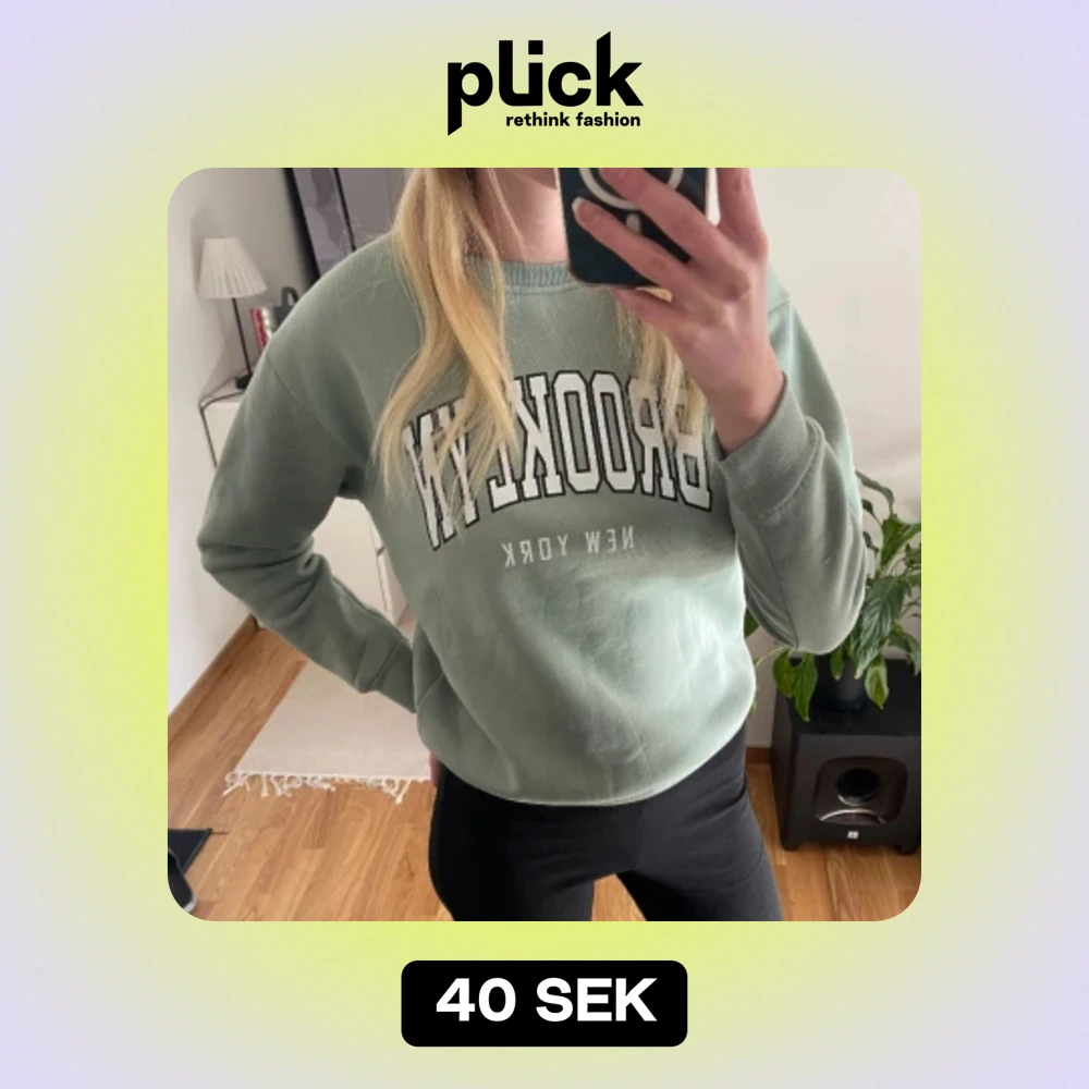 En grön tröja med tryck.💚 Den är köpt från SHEIN💚 Använd en gång sen har den bara legat i garderoben 💚 den är väldigt skön inuti💚