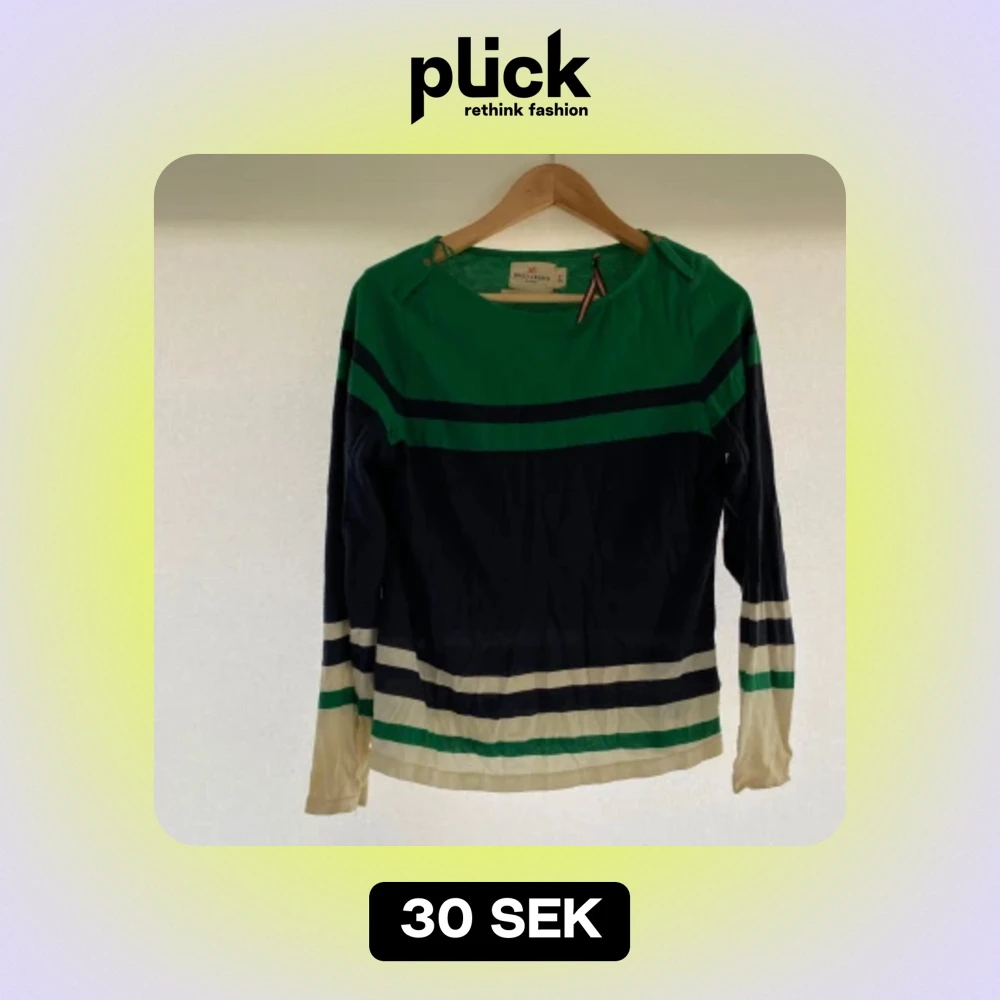 En långärmad tröja från Holly & Whyte by Lindex i storlek M. Tröjan har ett randigt mönster i grönt, marinblått och vitt. Använd 1 gång. Hör av er vid eventuella frågor!!