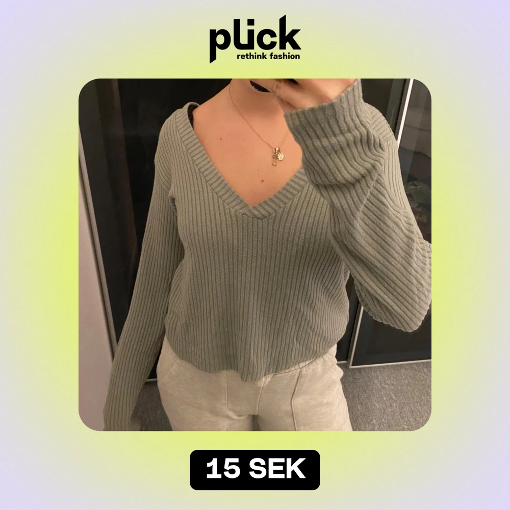 Säljer en supermysig grå ribbad tröja med v-ringning och shorts. Perfekt för höst och vinter! Säljer som ett set för 15kr.