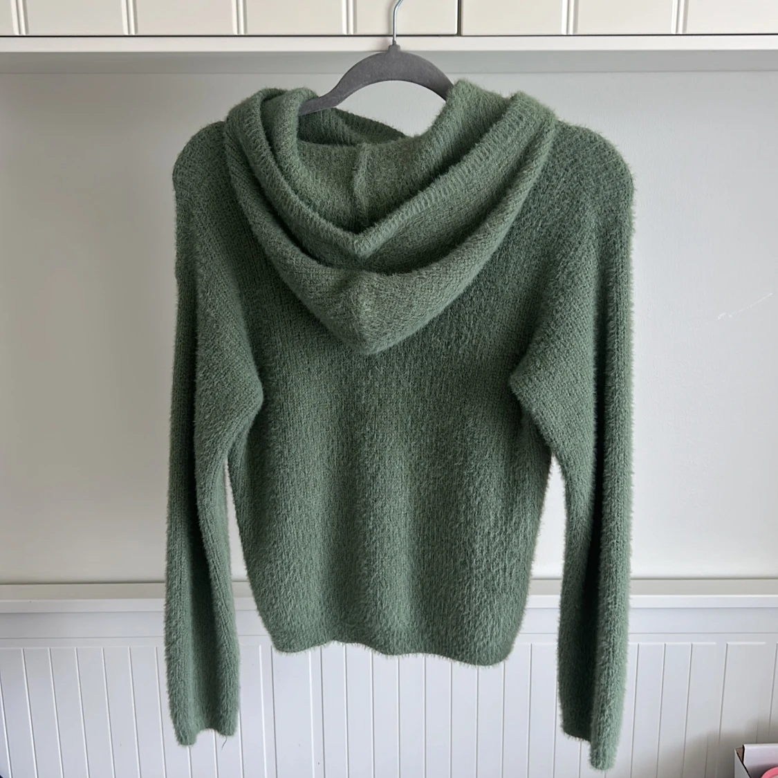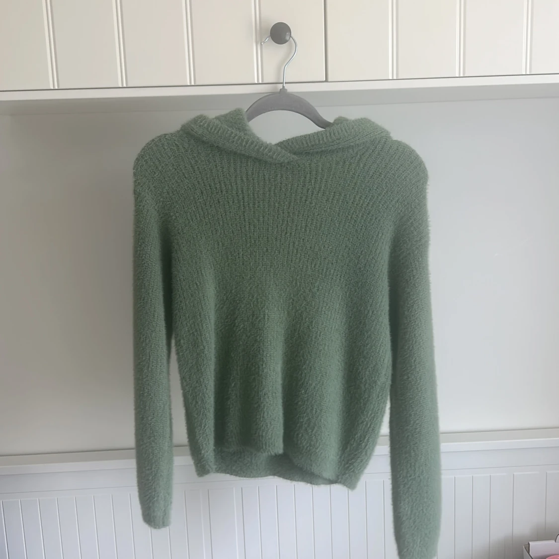 Mysig ljusgrön hoodie med luva och lång ärm. Tröjan är fluffig och mjuk, perfekt för kyliga dagar. Enkel och stilren design utan synliga detaljer eller mönster. Från Kappahl, knappast använd.