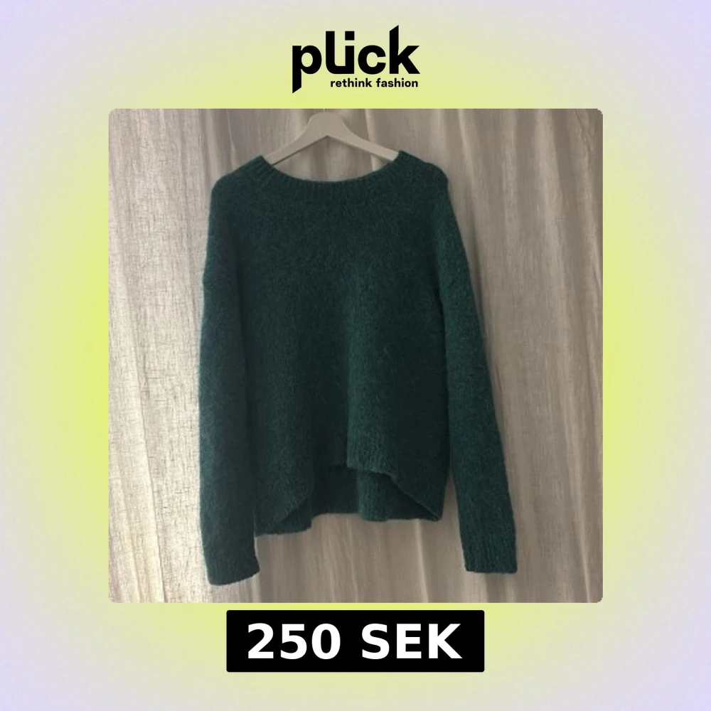 Mysig grön stickad tröja från H&M i alpackablandning. Tröjan har en rund halsringning, lång ärm och en loose passform med lite längre bakstycke. Perfekt för dig som gillar en chill och oversized vibe.