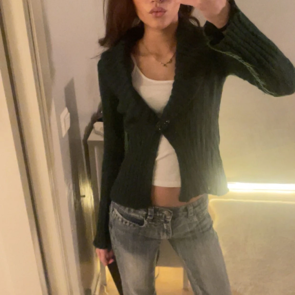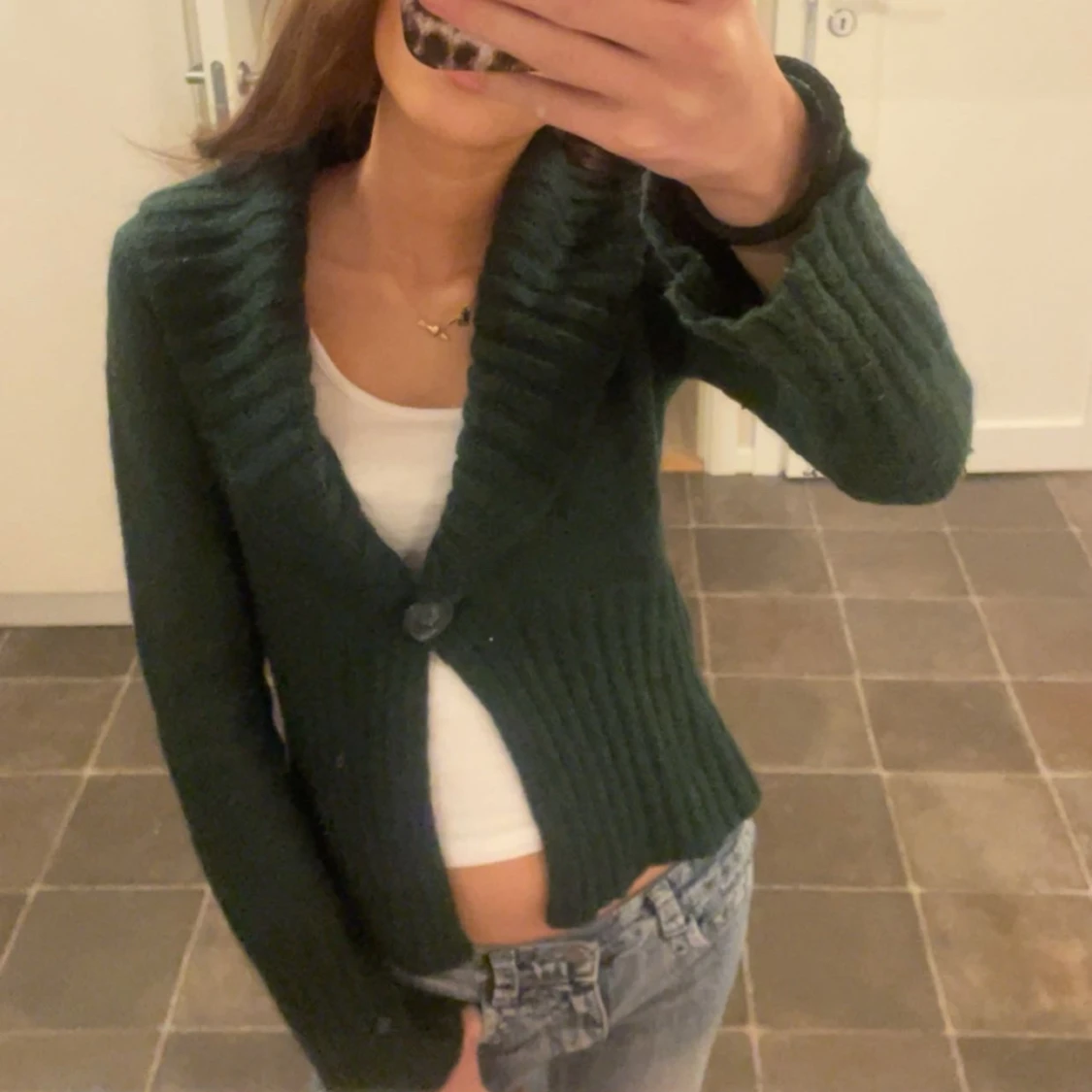 Jätte fin kofta/cardigan som är mörkgrön, super fin men tycker inte den faller mig i smaken💘