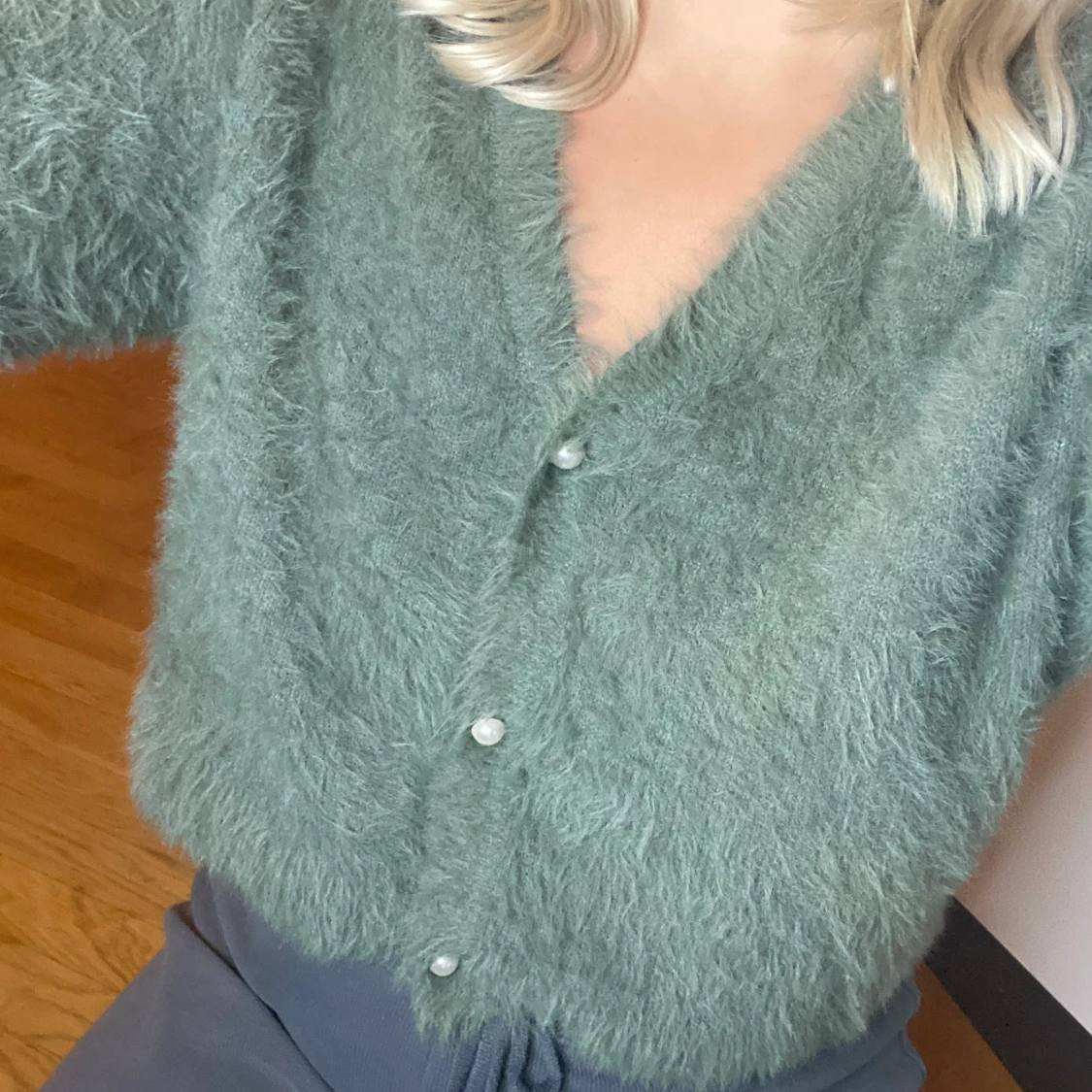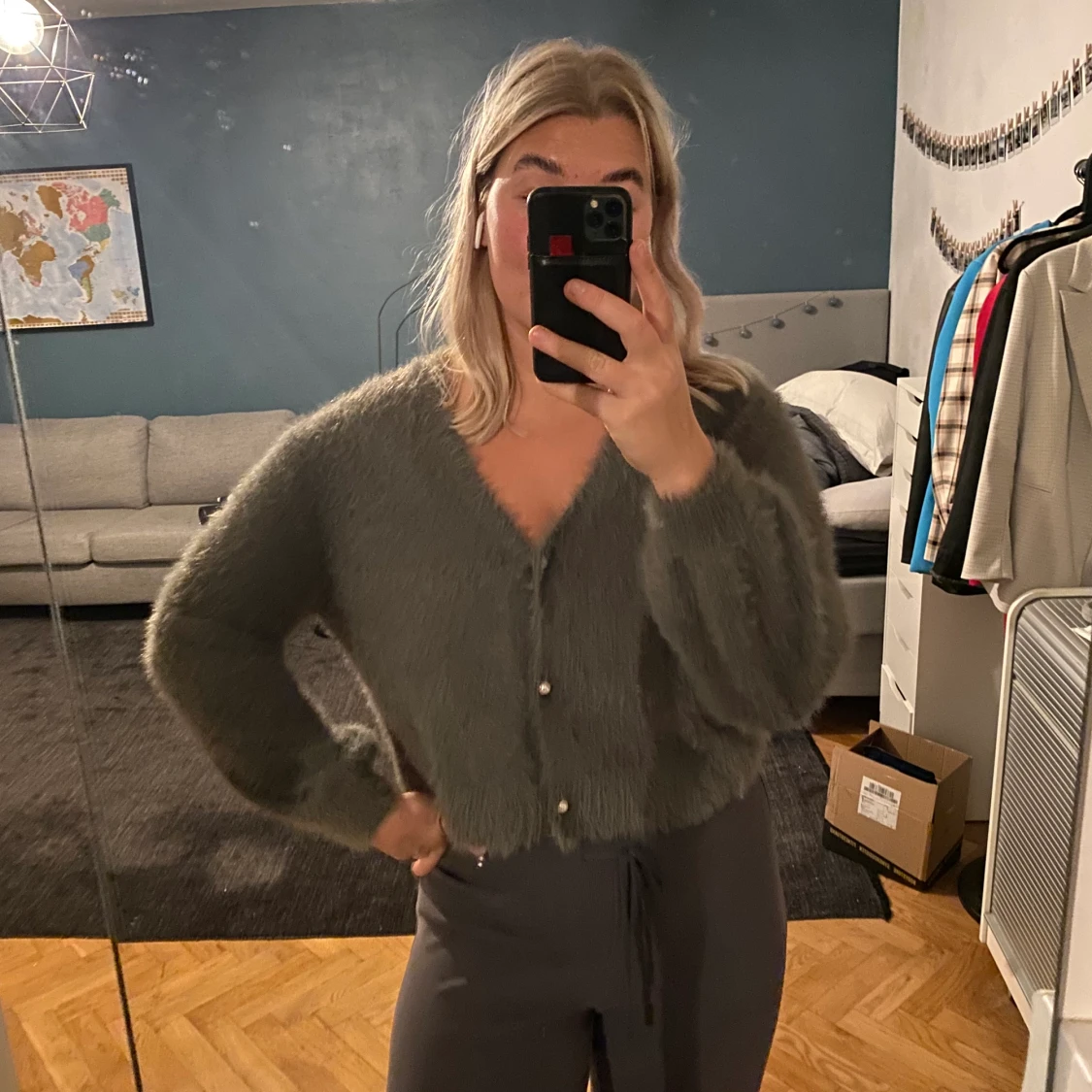 Grön lurviga tröja som även går att knäppa upp. Fint skick och superskön!