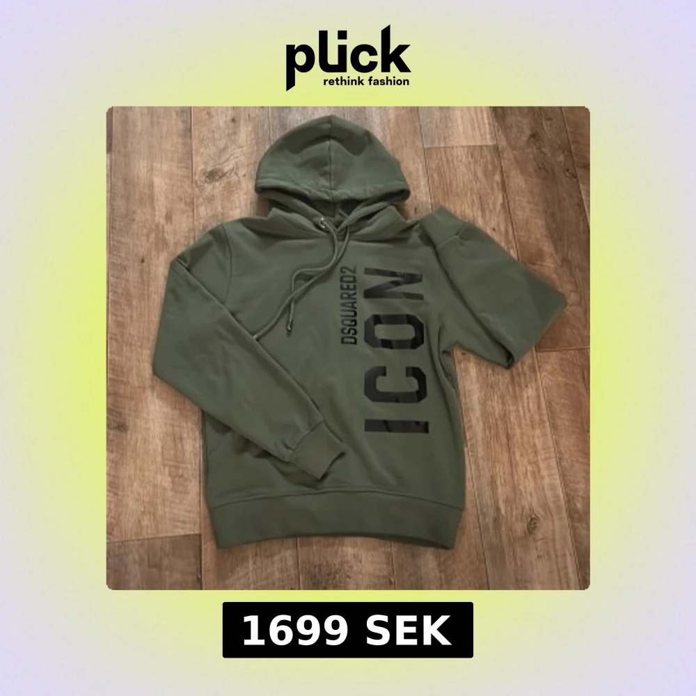Snygg grön hoodie från DSQUARED2 med stor svart 'ICON'-print på framsidan och snörning vid huvan. Tröjan har lång ärm och lite slimmad passform, perfekt för dig som gillar grisch still eller annat och vill sticka ut med en fet logga. ‼️OBS köptes för 5000‼️