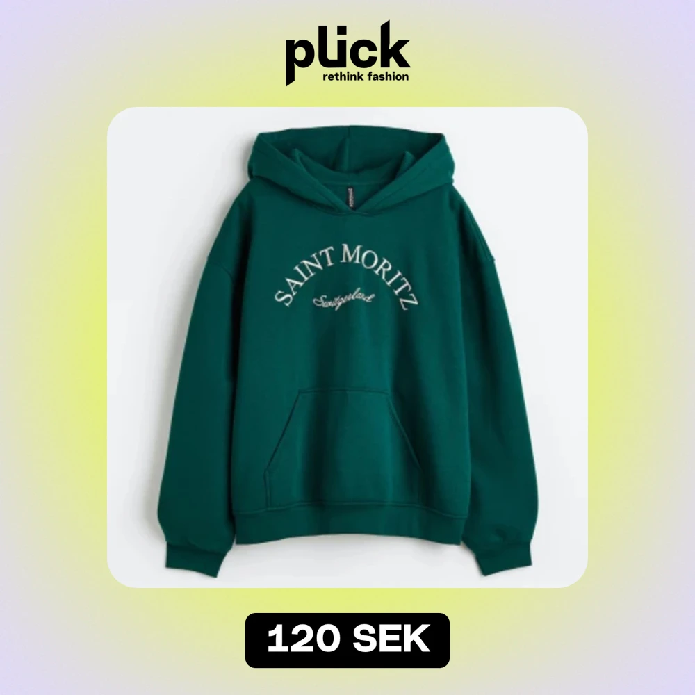 En bekväm grön hoodie från Divided med texten 'Saint Moritz' tryckt på framsidan. Hoodien har en känguruficka och ribbstickade muddar vid ärmslut och nederkant.