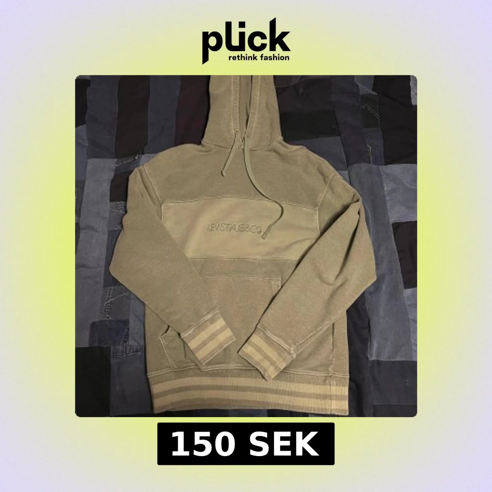 Säljer en snygg grön hoodie från Levi's med broderad logga på bröstet. Tröjan har en klassisk känguruficka och justerbar huva med dragsko. Perfekt för en avslappnad stil.