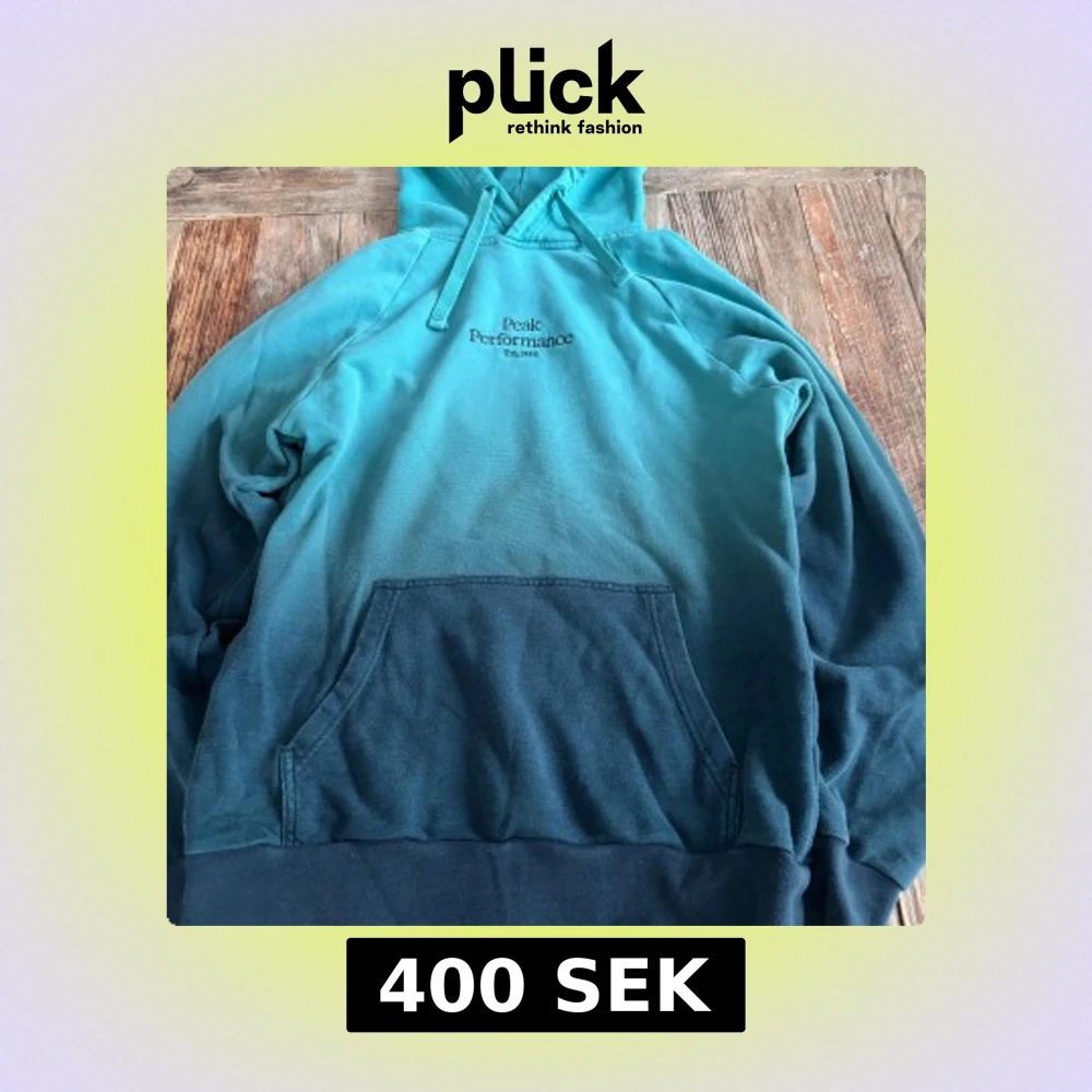 Säljer en snygg grön hoodie från Peak Performance med en cool ombre-effekt. Tröjan har en känguruficka och justerbar huva med dragsko. Perfekt för en avslappnad stil.