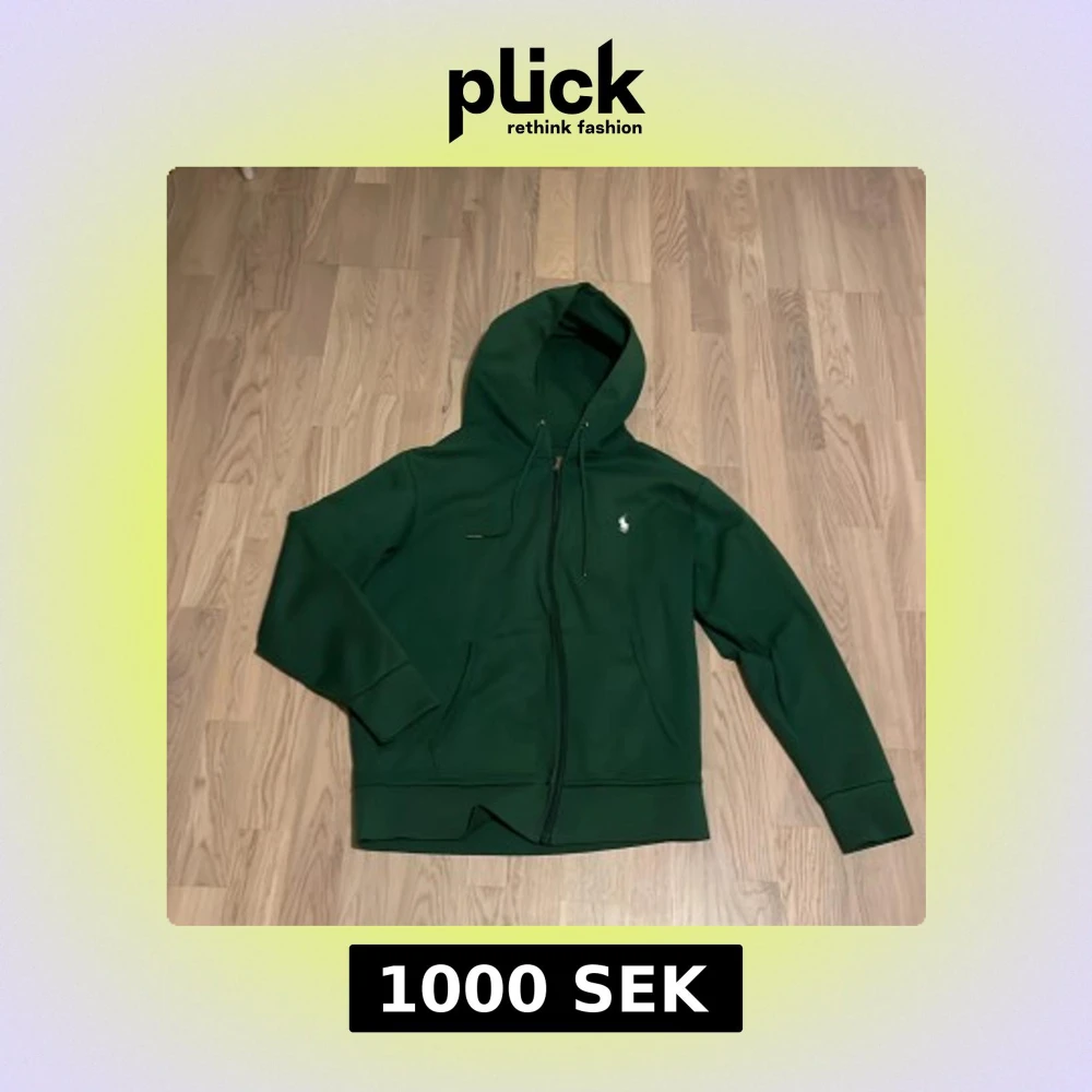 Säljer en snygg grön hoodie från Ralph Lauren med dragkedja och broderad logga på bröstet. Perfekt för en avslappnad stil med långa ärmar och justerbar huva. Passar bra till både jeans och joggers.