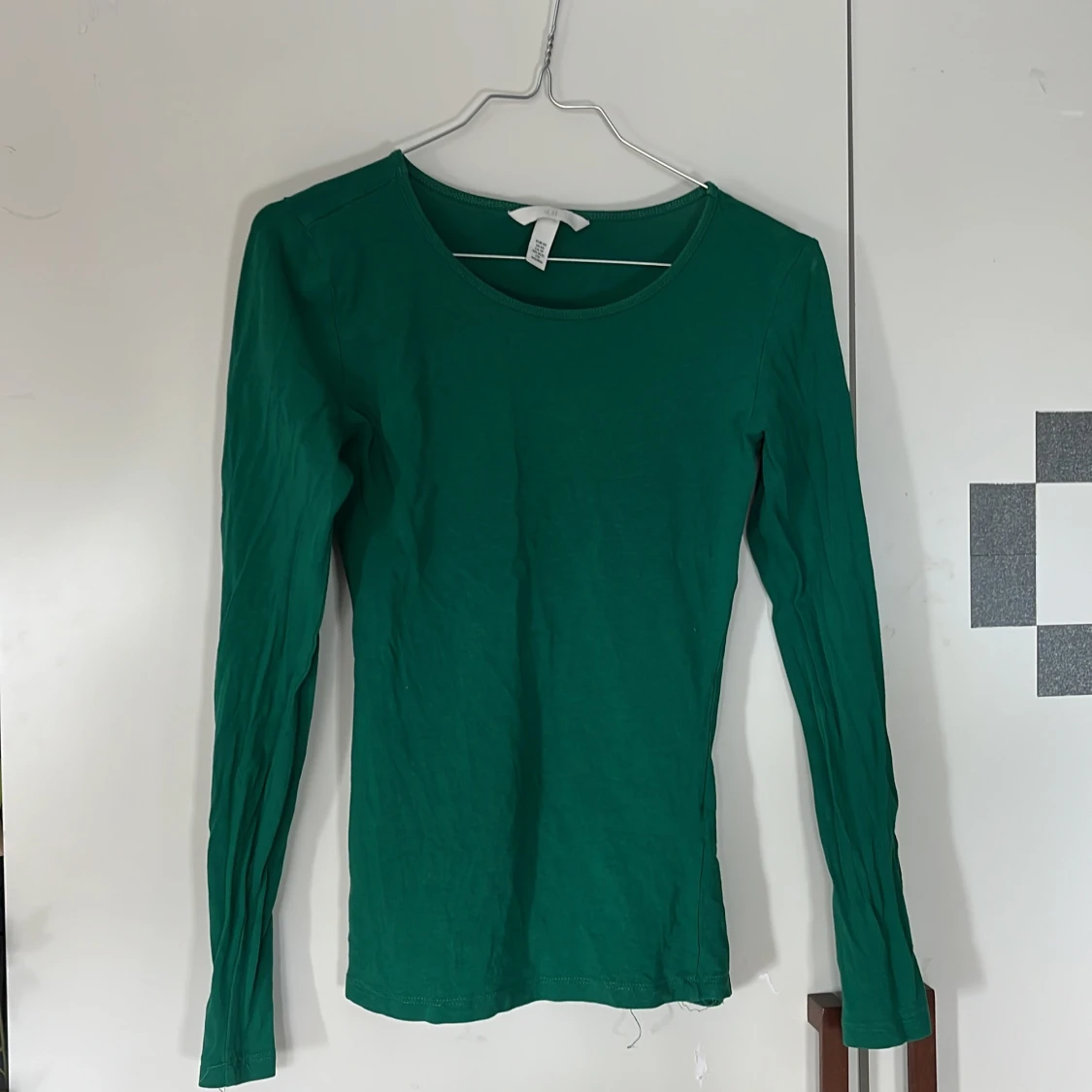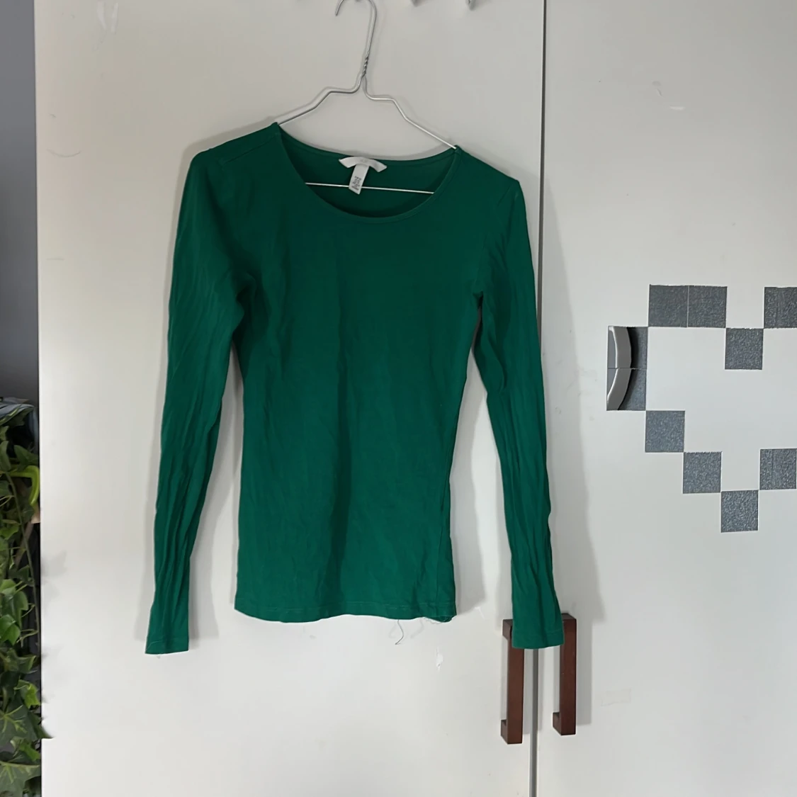 Säljer en enkel och stilren grön långärmad topp från H&M. Modellen är figurnära med rund halsringning och passar perfekt till lager-på-lager eller som den är. Tunn och mjuk bomullskvalitet.