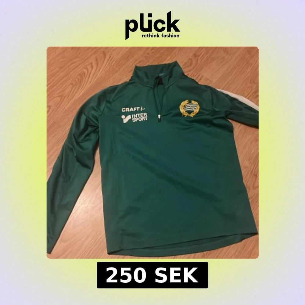 Grön långärmad träningströja från Craft med Hammarby IF-emblem på bröstet och vit Intersport-logga. Tröjan har halv dragkedja framtill och vita ränder längs axlarna. Perfekt för fotbollsträning eller sportiga aktiviteter.
