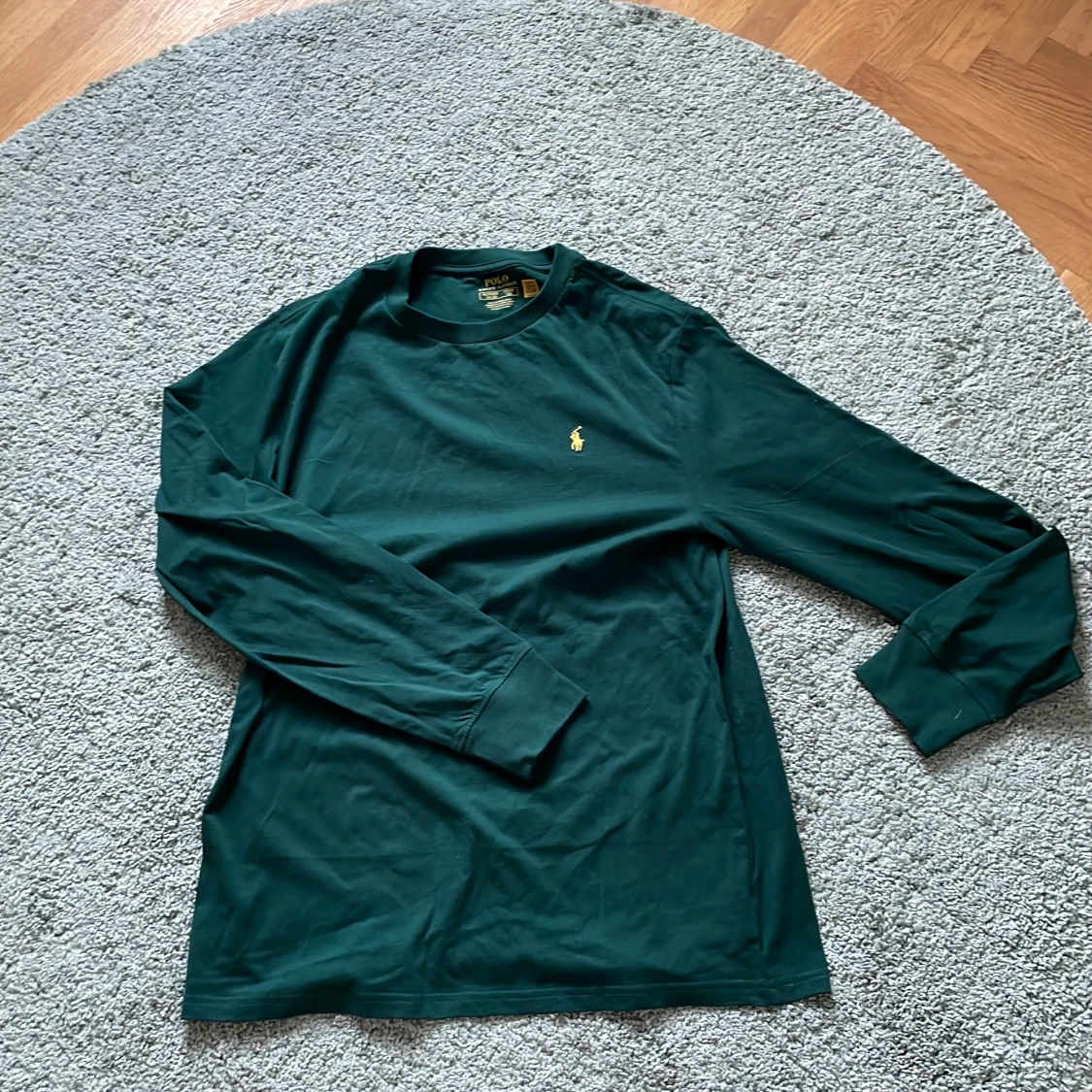 Säljer en stilren grön långärmad tröja från Ralph Lauren med det klassiska broderade logotypen på bröstet. Perfekt för en avslappnad och snygg look. Tröjan är tillverkad i ett mjukt och bekvämt material. Perfekt nu till våren! Nypris: 950 kr