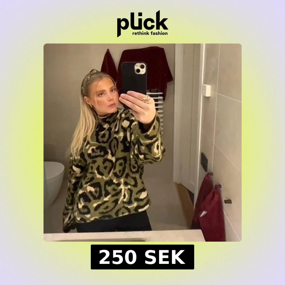 Säljer en mysig tröja med leopardmönster i gröna, svarta och beige toner. Tröjan har en krage och lång ärm, perfekt för kalla dagar. Snygg och trendig att bära till vardags. Använd fåtal gånger, skriv för fler bilder💞