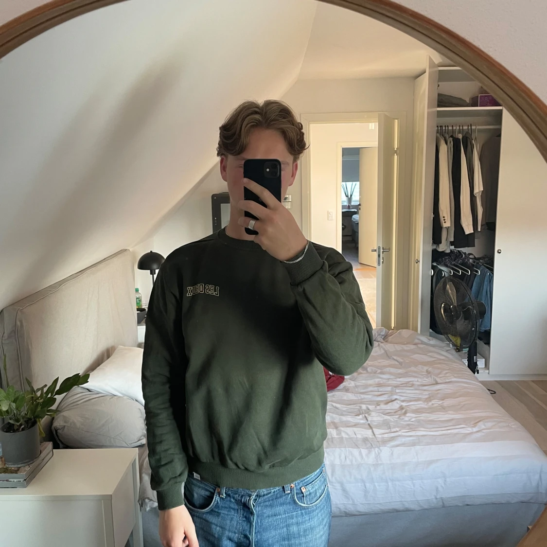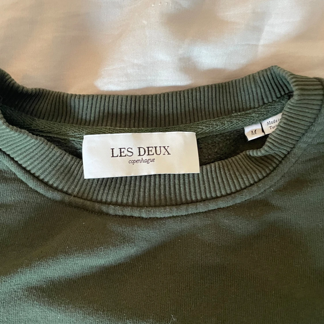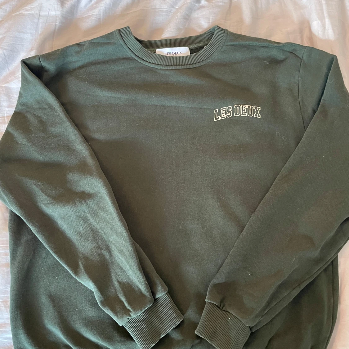 Mörkgrön Les Deux tröja i storlek M. Har ett litet hål på vänstra armen men är annars i fint skick. Nypris är ca 980kr.