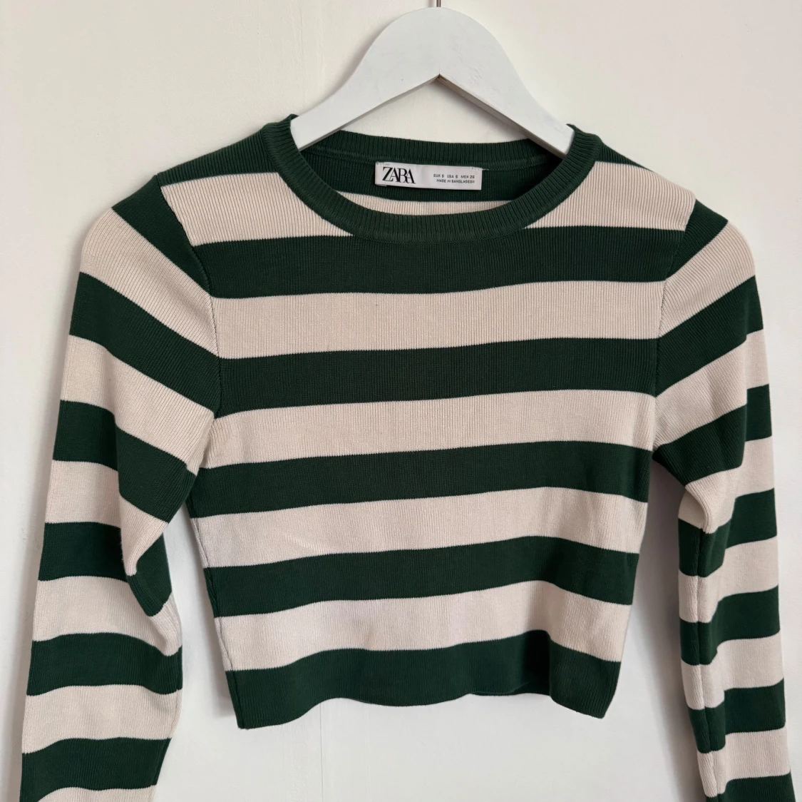 Croppas långärmad tröja från Zara med breda gröna och vita ränder.