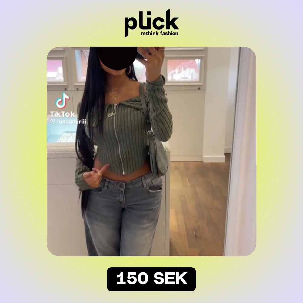 Säljer en superfin olivgrön ribbad tröja med dragkedja framtill. Tröjan är helt ny utan prislapp!