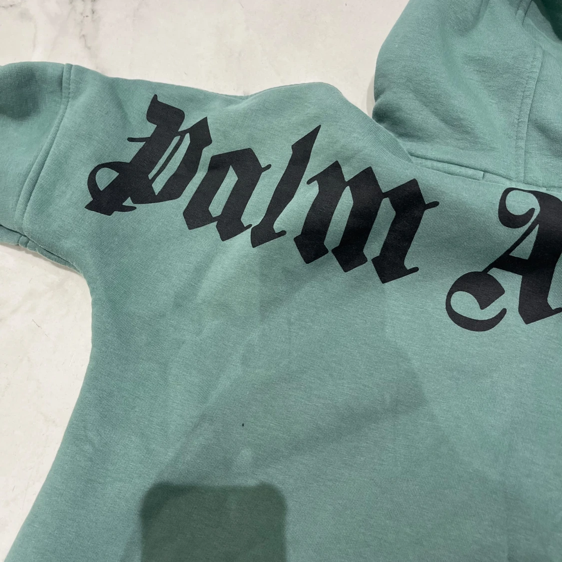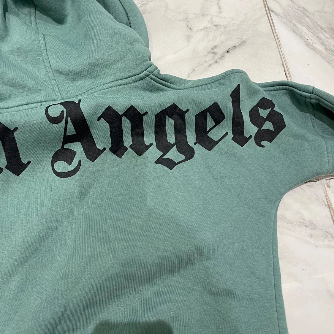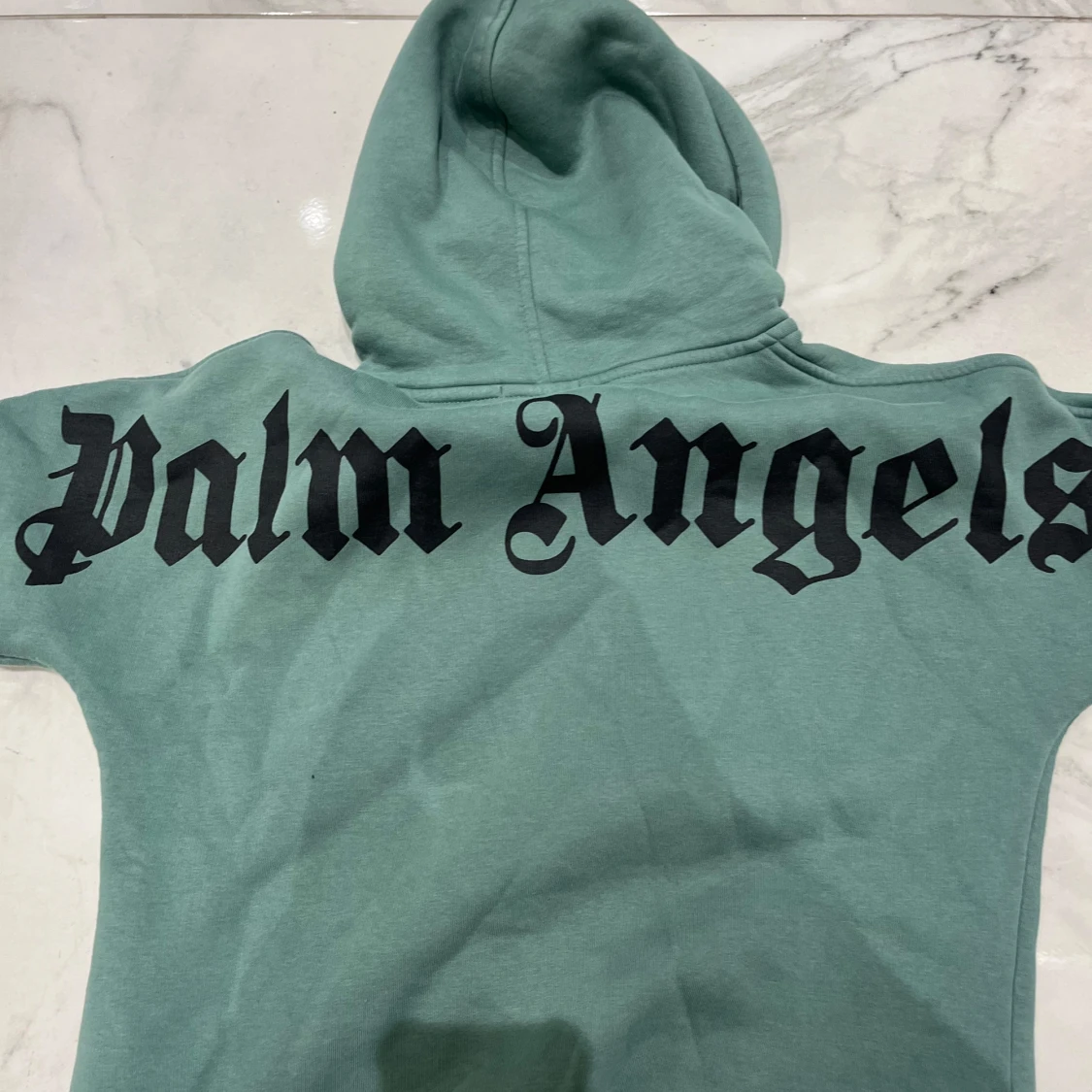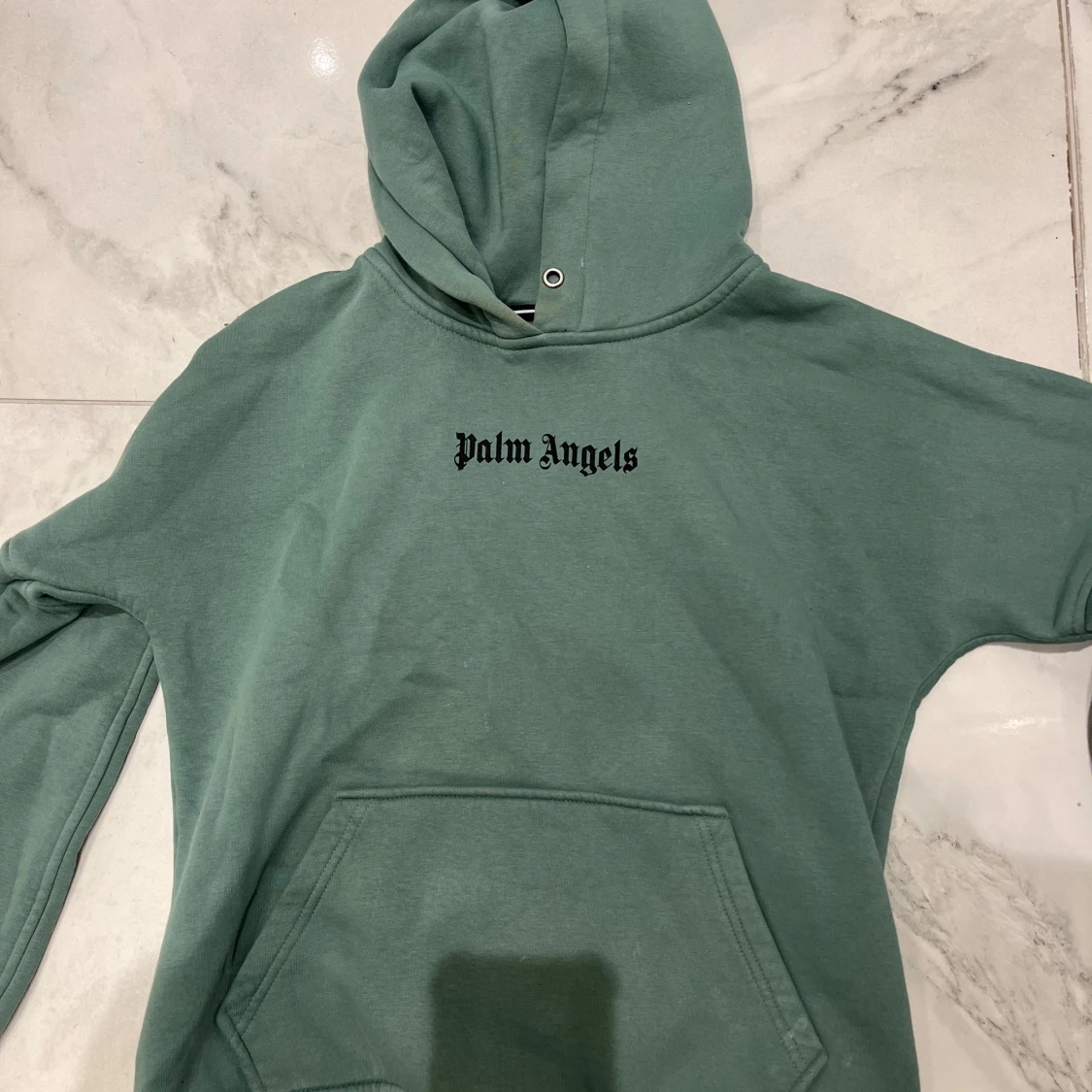 Snygg grön hoodie med svart logotyptryck både fram och bak. Klassisk känguruficka och huva. Perfekt för dig som gillar streetwear och vill sticka ut med en trendig look. NOT REAL