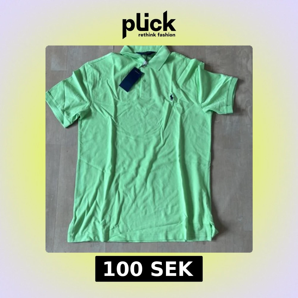 Snygg grön pikétröja från Ralph Lauren med klassisk krage och korta ärmar. Tröjan har en broderad logotyp på bröstet och knappar vid halsen. Perfekt för en stilren look.