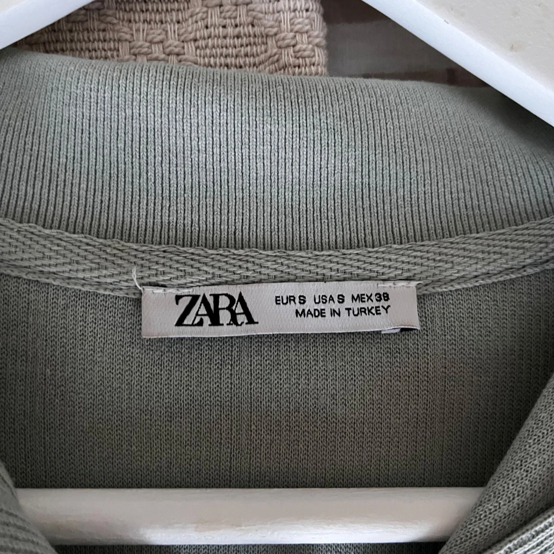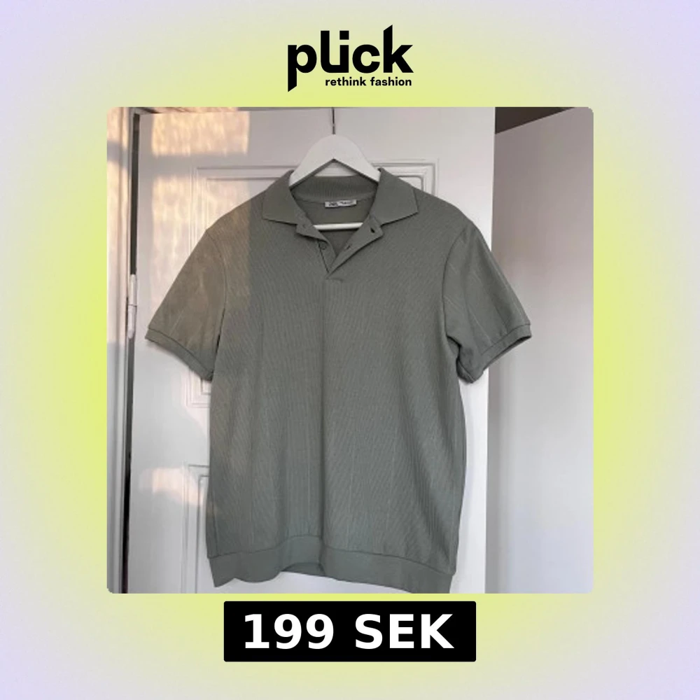 Snygg grön pikétröja från Zara med klassisk krage och korta ärmar. Perfekt för en stilren och avslappnad look. Hör av dig vid minsta fråga eller fundering!