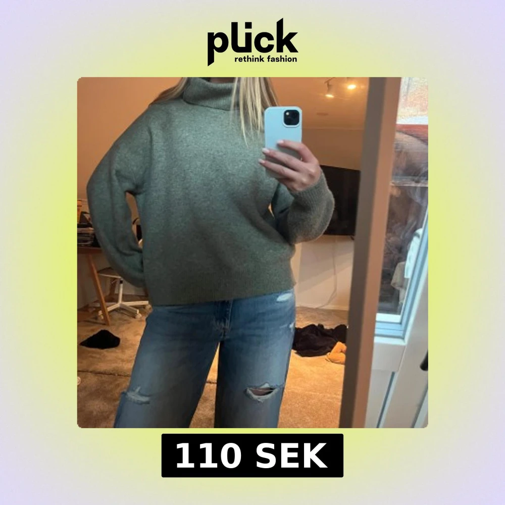 Jättefin oliv/grön tröja med turtleneck! Den är väldigt skön och lite översized❤️Ganska nopprig men supersnygg ändå!!