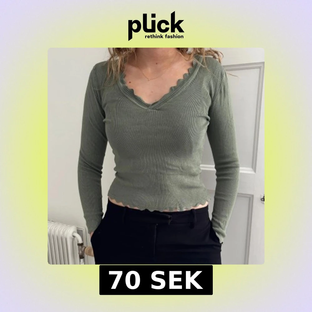 Säljer en grön ribbad topp från JDY med v-ringad hals och vågiga kanter💞💞