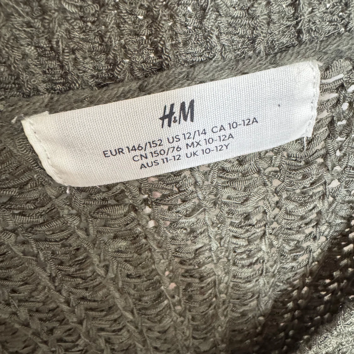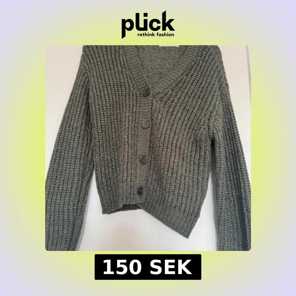 Mysig grå stickad kofta från H&M med v-ringning och stora knappar framtill.