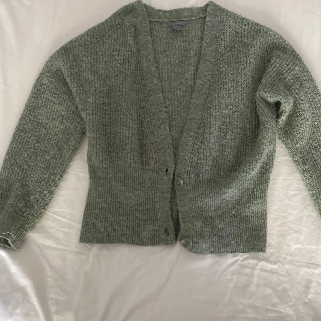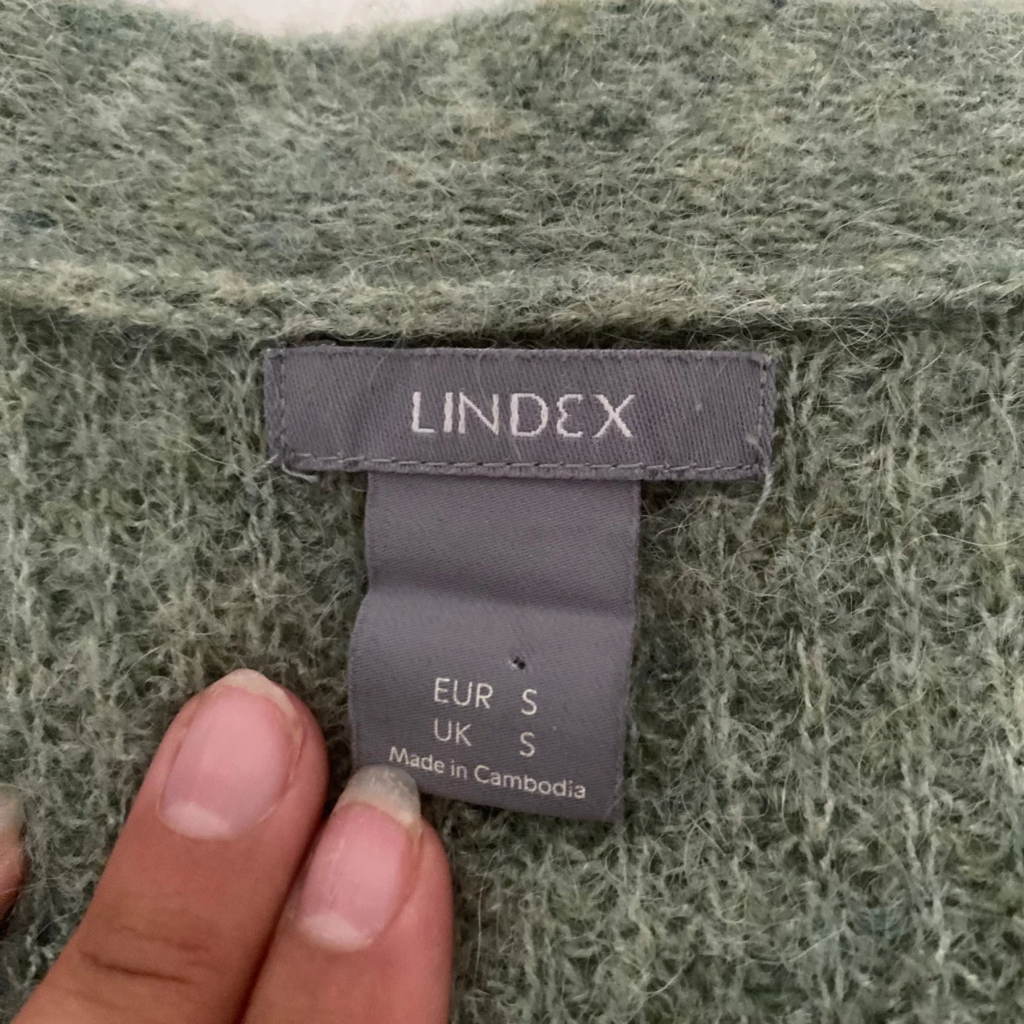 Mysig ljusgrön stickad kofta från Lindex med v-ringning och två knappar framtill. Koftan har långärmad passform och är ribbstickad för en chill och trendig look. Perfekt att slänga över en t-shirt eller linne när det är lite kyligt ute.