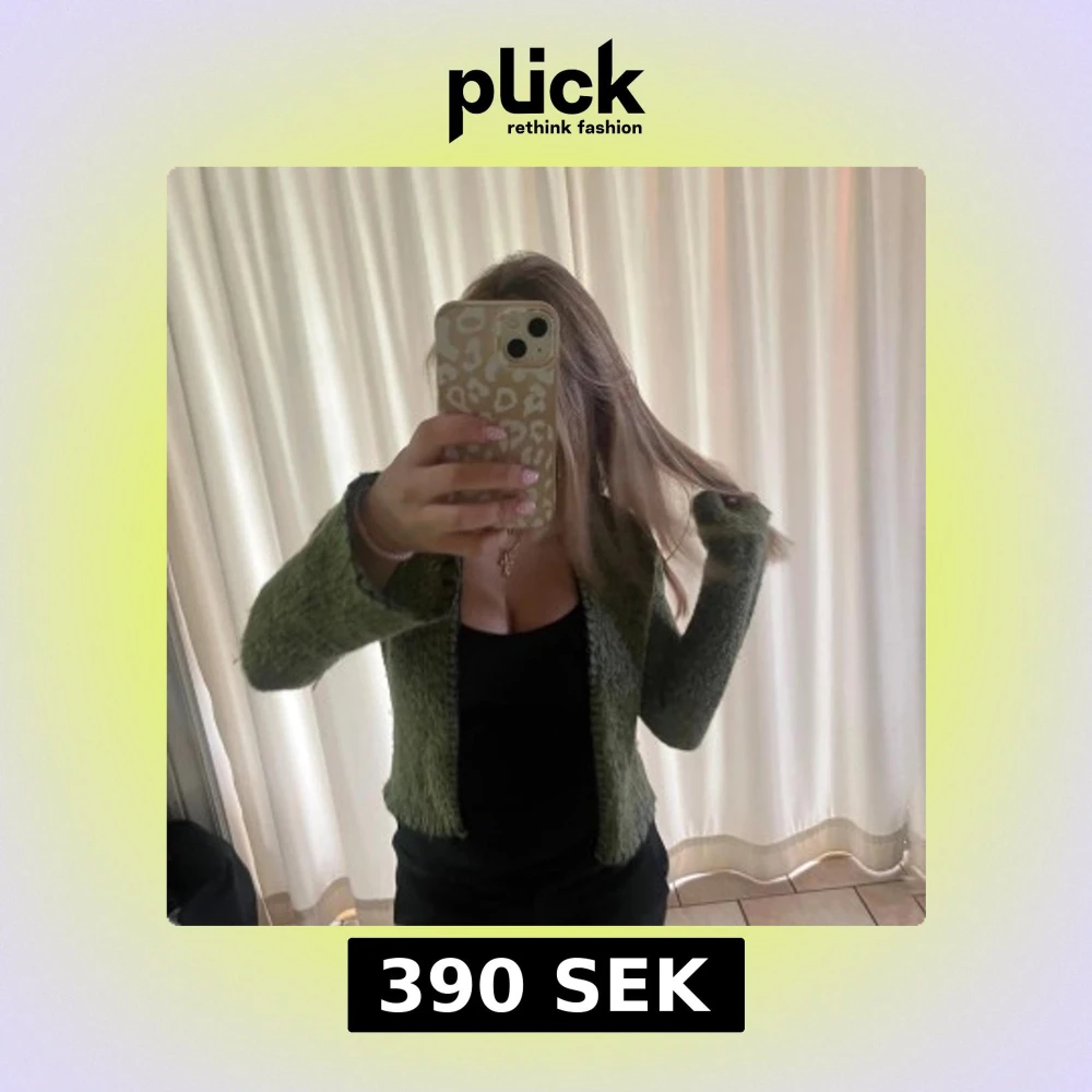 Säljer en mysig grön stickad mohair kofta från Zoul i storlek 34/36. Koftan har lång ärm, öppen framtill och coola mörka sömmar längs kanterna. Perfekt att slänga över en topp för en chill look.