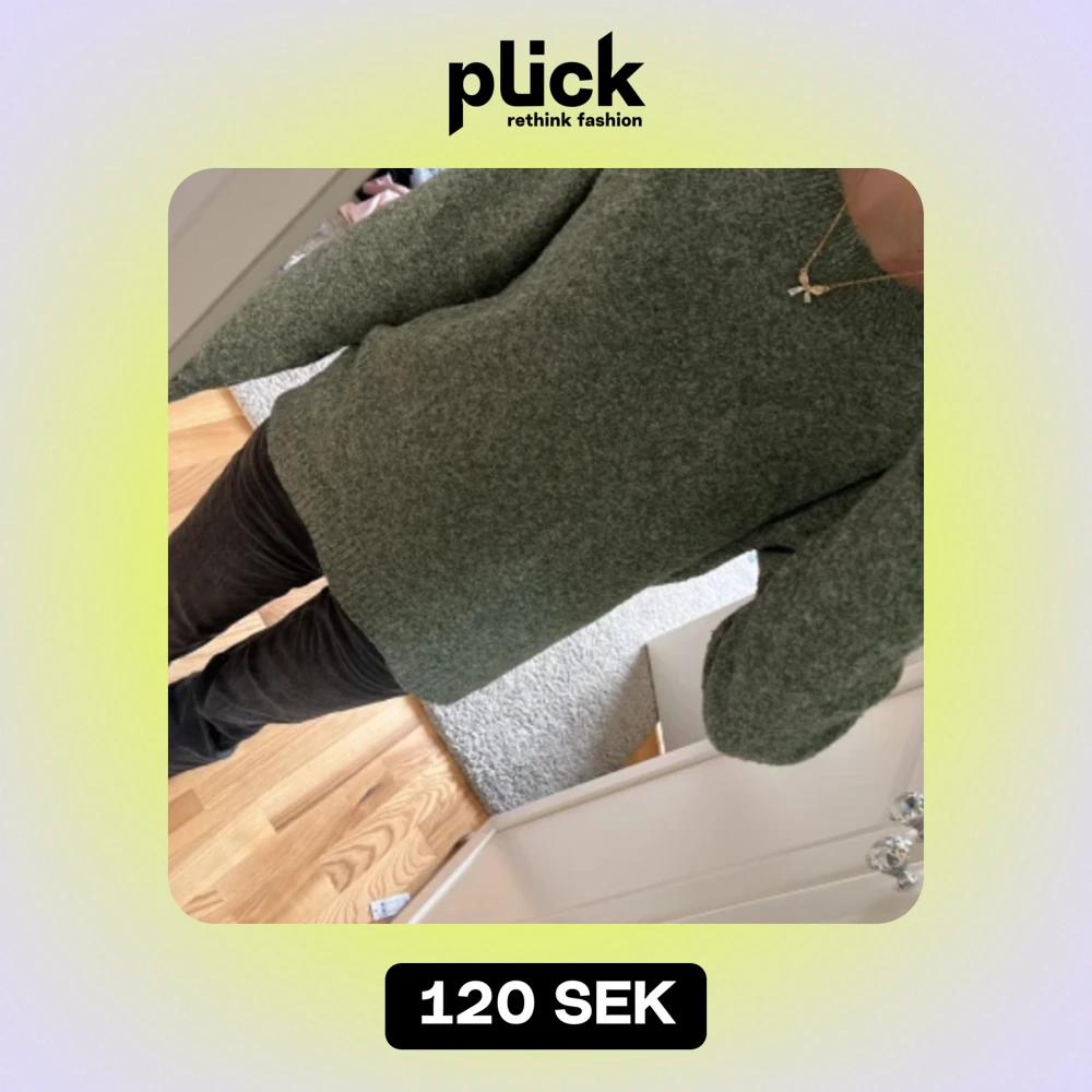 Säljer en supermysig grön stickad tröja som är perfekt för kyliga dagar. Den har en enkel design med långa ärmar och en normal passform. Perfekt för både höst och vinter!