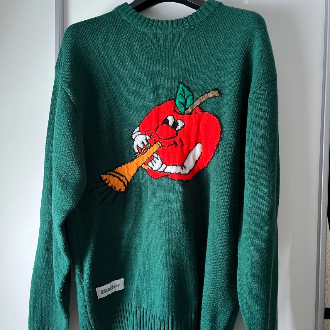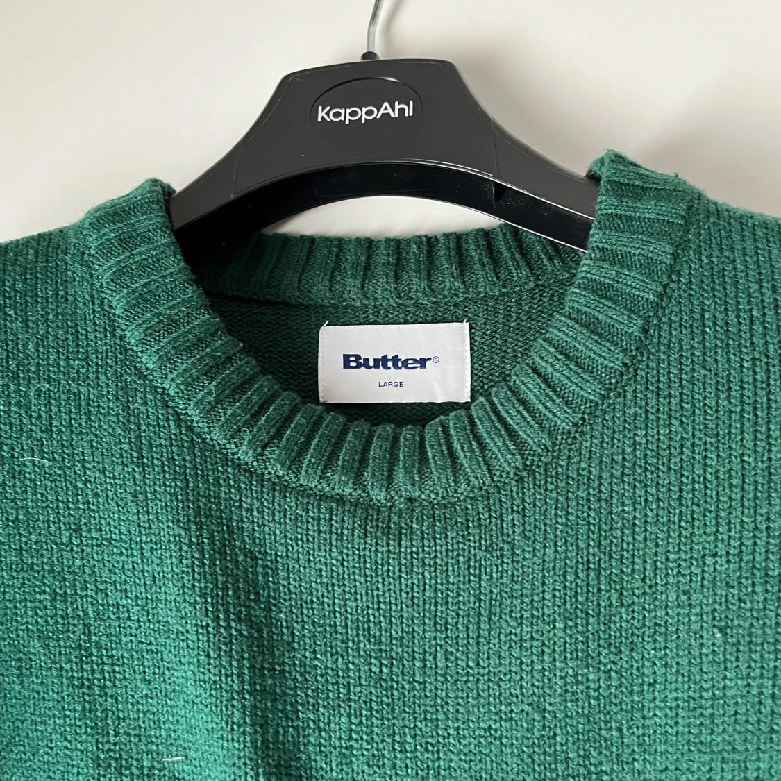 Säljer en grön stickad tröja från Butter i storlek Large. Jätteskön och bra kvalite. Väl använd och i bra skick