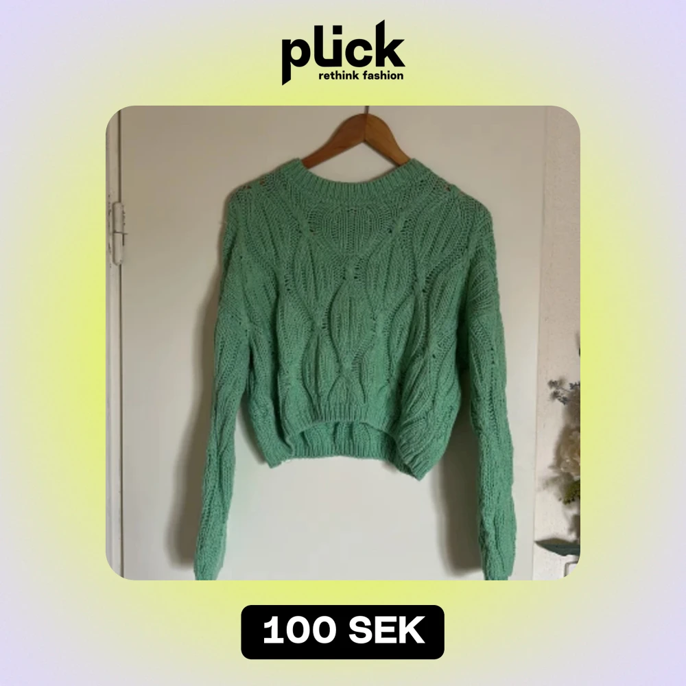 Säljer en superfin grön stickad tröja från Shein i storlek 38. Tröjan har ett snyggt mönster och är perfekt för höst och vinter. Den är långärmad och har en croppad passform som gör den både trendig och bekväm.