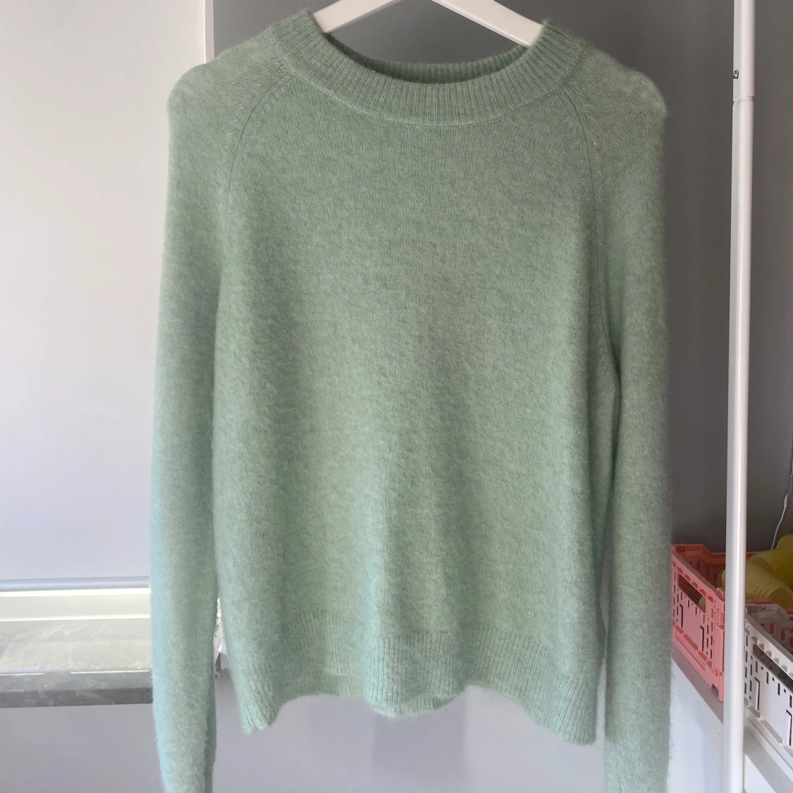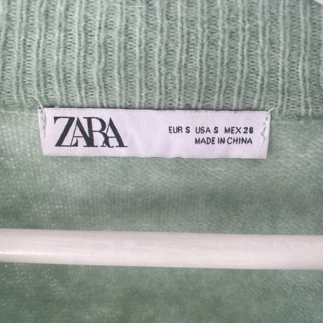 Mysig grön stickad tröja från Zara i storlek S. Väldigt bekväm och gosig. Säljer för att den inte kommer till användning längre.