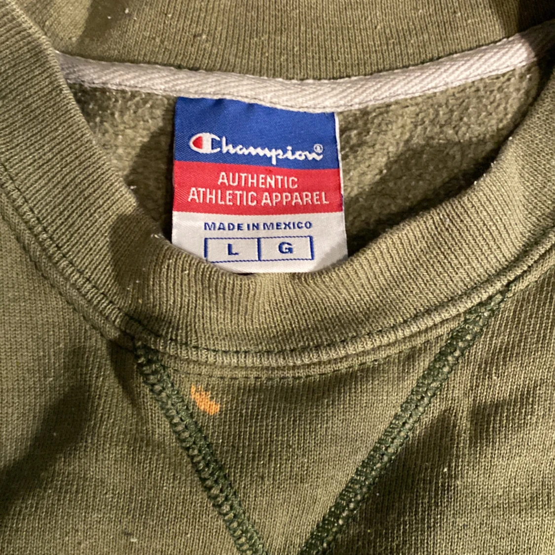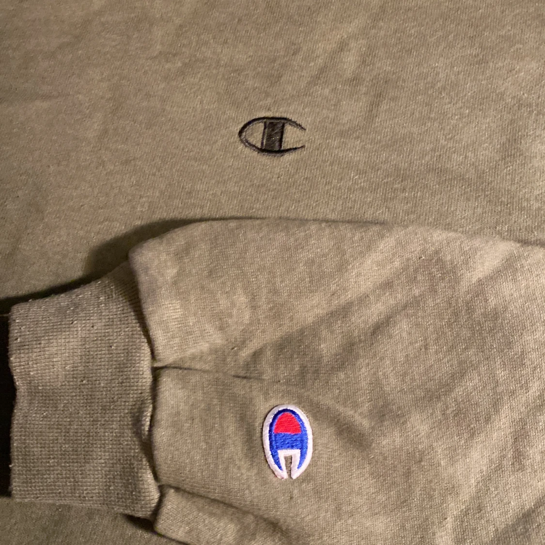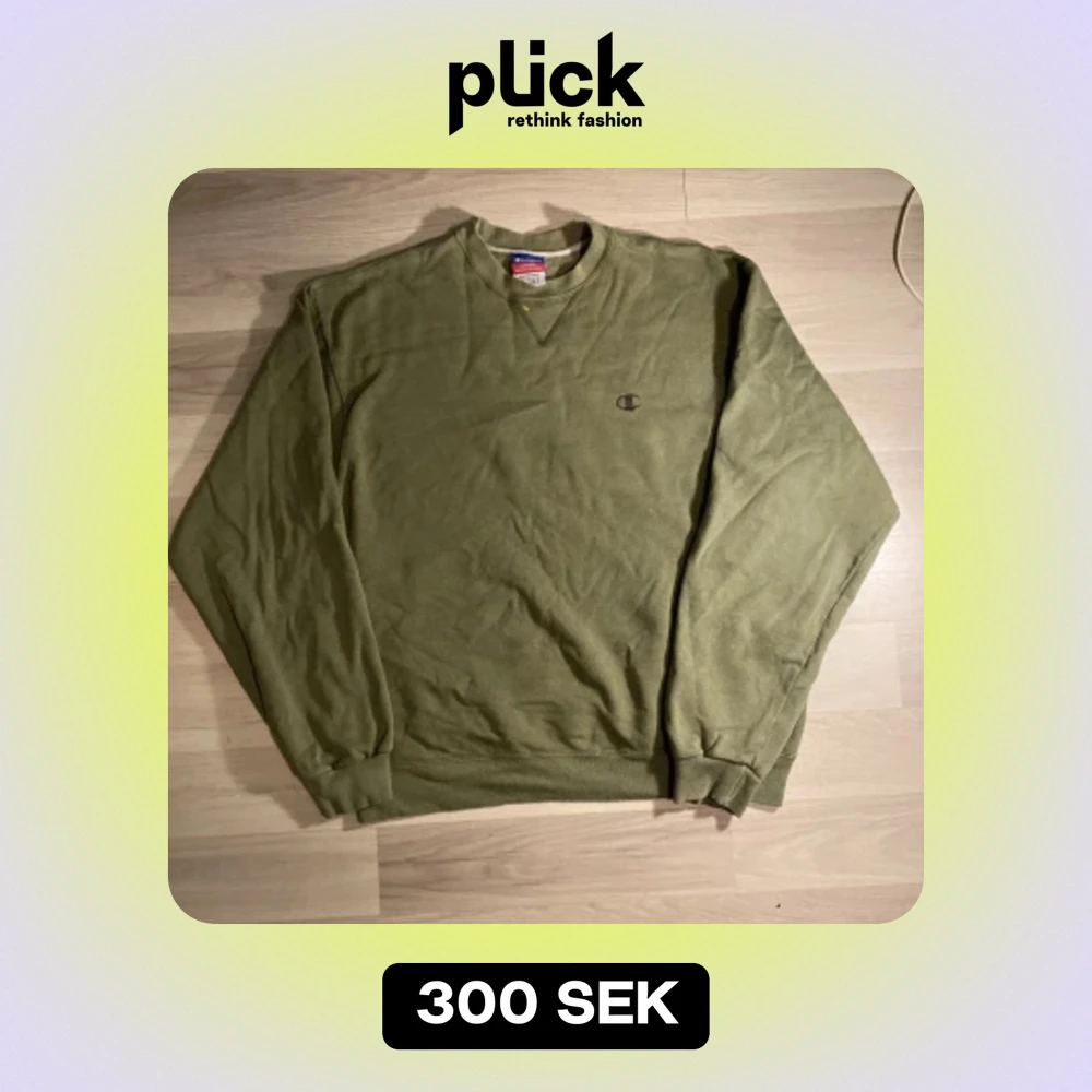 Säljer en grön sweatshirt från Champion i storlek L. Den har en klassisk design med ribbade muddar och en liten Champion-logga på bröstet. Perfekt för en avslappnad stil. Lite använd men i bra skick!