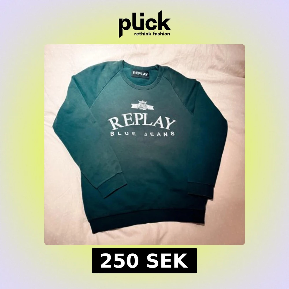 Säljer en snygg grön sweatshirt från Replay med tryck som har en snygg slitning. Den är i en typ skogsgrön som var rätt svår att få på kamera. Det är en L men jag skulle säga att den passar bättre på M. 100% bomull. Hör av er vid undran. 🙏🙏