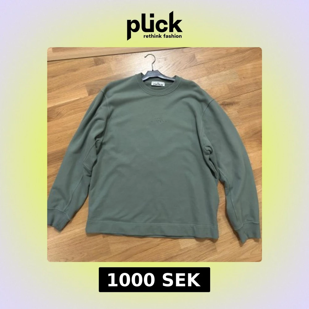 Säljer en stilren grön sweatshirt från Stone Island med broderad logga på bröstet. Tröjan har rund hals, långa ärmar och ribbade muddar. Perfekt för dig som gillar clean och avslappnad stil.