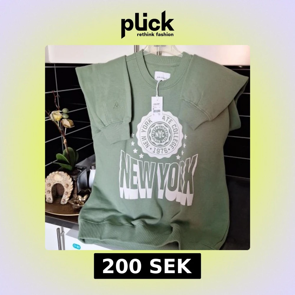 Säljer en grön sweatshirt från Vailent med trycket 'New York' i vitt på framsidan. Tröjan har rund hals och långa ärmar med ribbade muddar. Perfekt för en avslappnad stil.