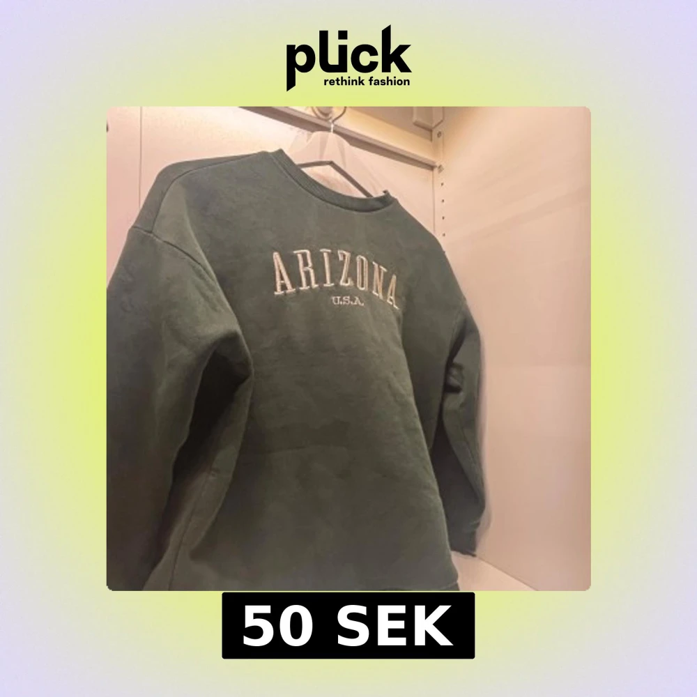 Säljer en grön sweatshirt med texten 'Arizona U.S.A.' på bröstet. Tröjan har långa ärmar och en rund halsringning. Perfekt för en avslappnad stil.
