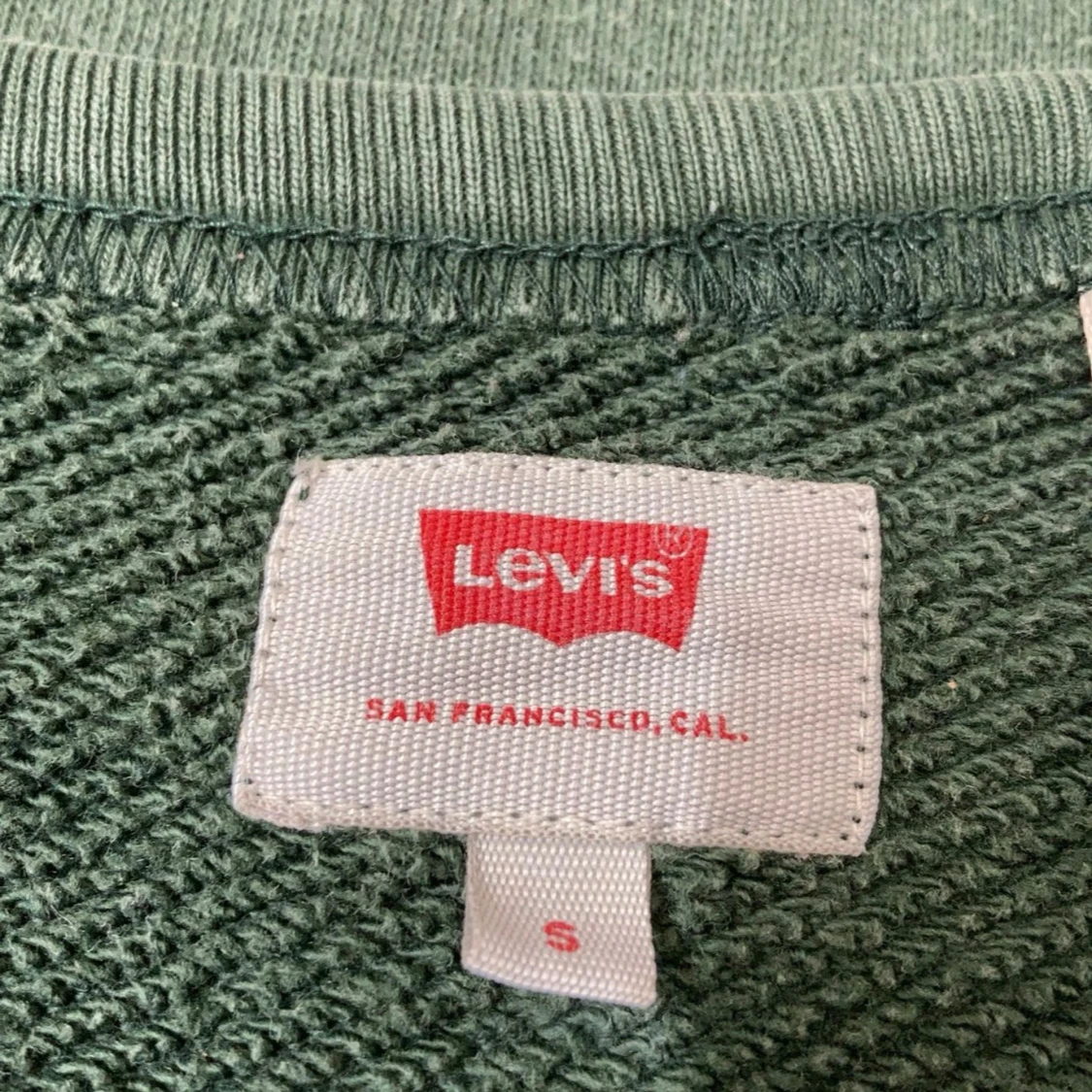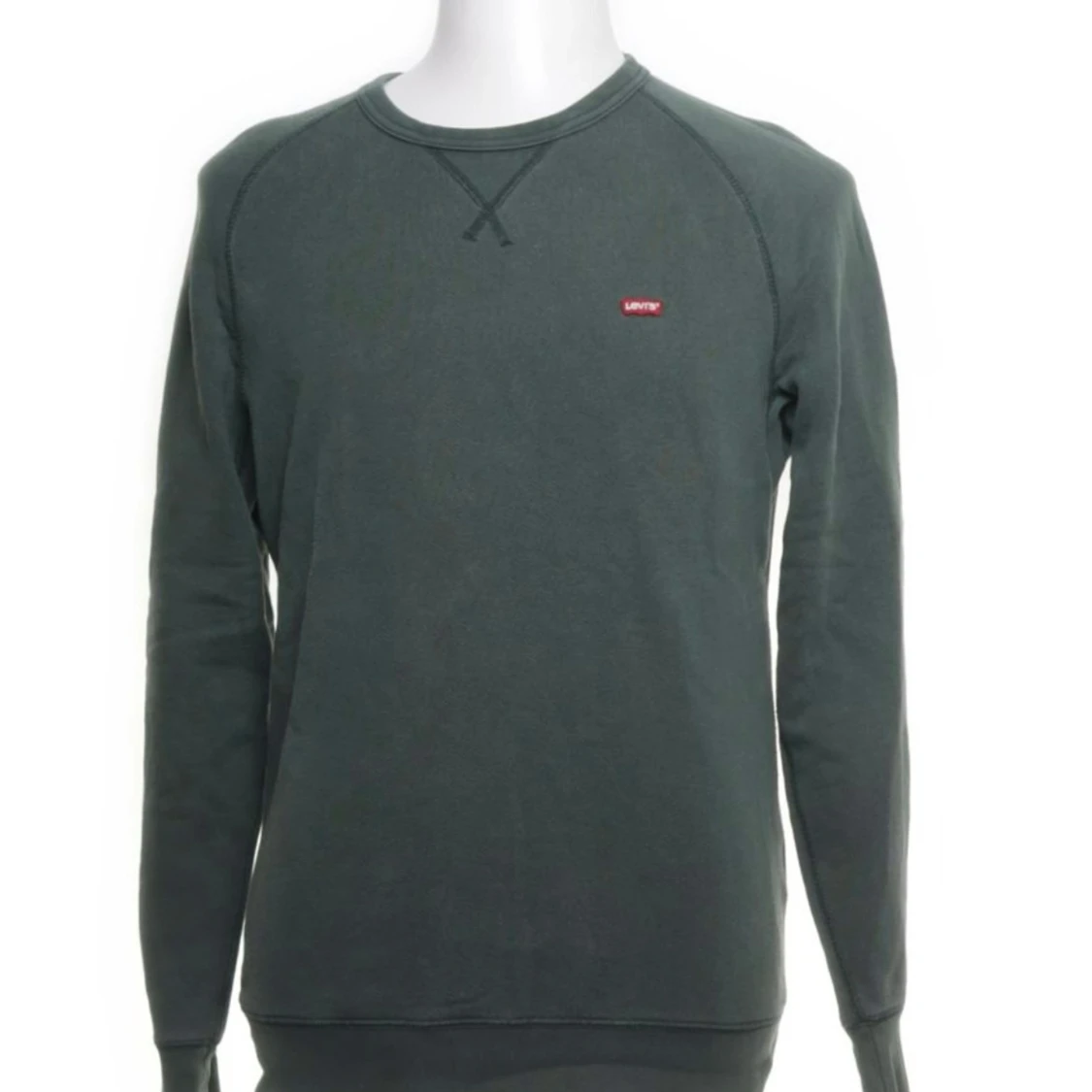 Säljer en snygg grön tröja från Levi's i mycket bra skick. Den har en liten röd Levi's-logga på bröstet och är perfekt för både vardag och chill. Tröjan är långärmad och gjord i ett mjukt material som känns skönt mot huden. Passar perfekt till jeans eller chinos!