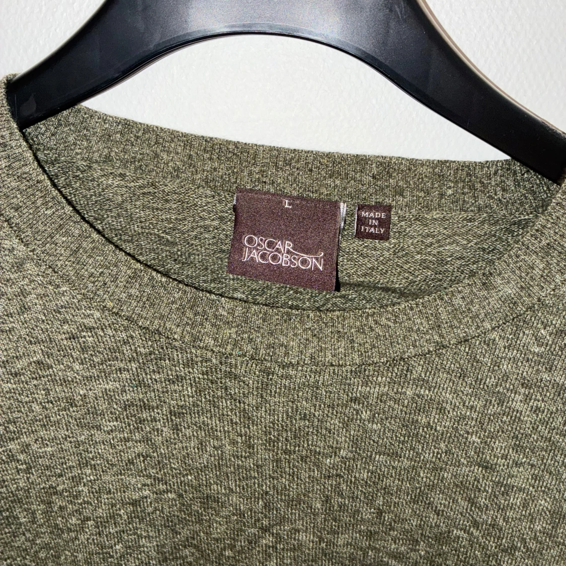 Säljer en stilren grön tröja från Oscar Jacobson, tillverkad i Italien. Tröjan har en klassisk design med rund hals och långa ärmar. Perfekt för en elegant och avslappnad look. Tröjan är i väldigt bra skick. Den är perfekt inför sommaren då den är tunn i materialet. Den är storlek L men skulle säga att den sitter någonstans i mellan L-M. Kunden står för frakt, priset går att diskutera