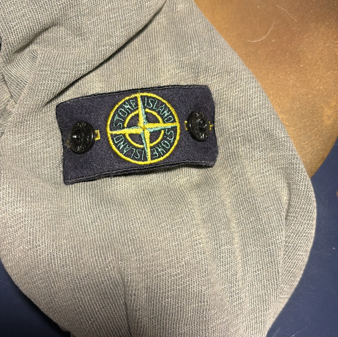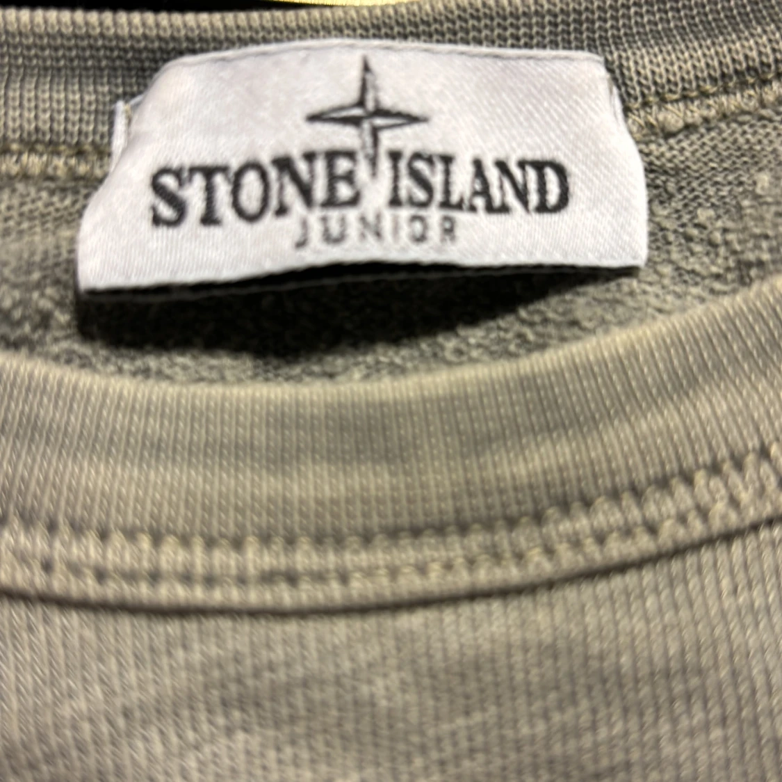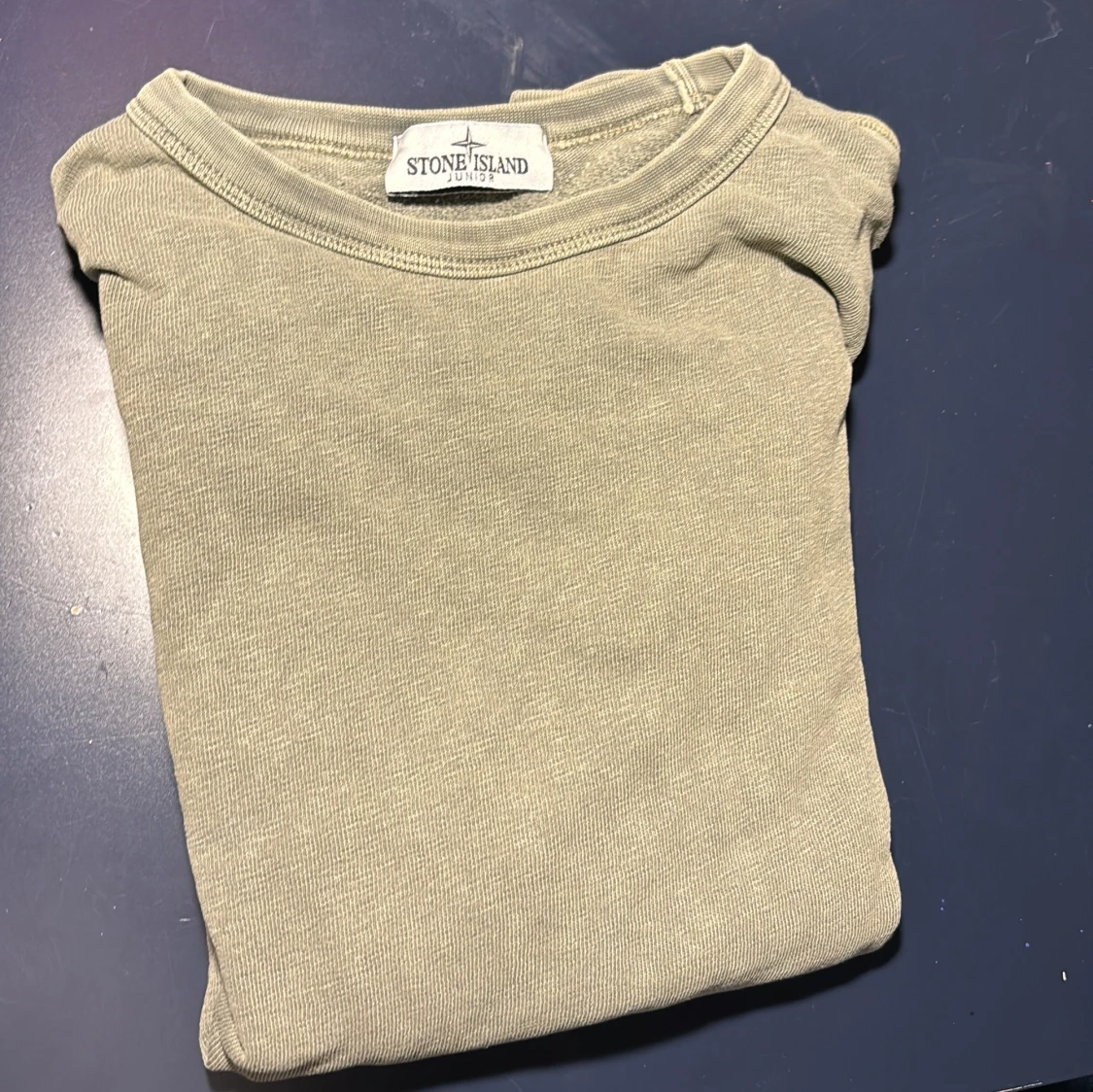 Säljer en stilren grön tröja från Stone Island Junior. Inte det bästa skicket. Perfekt för en avslappnad och trendig look.