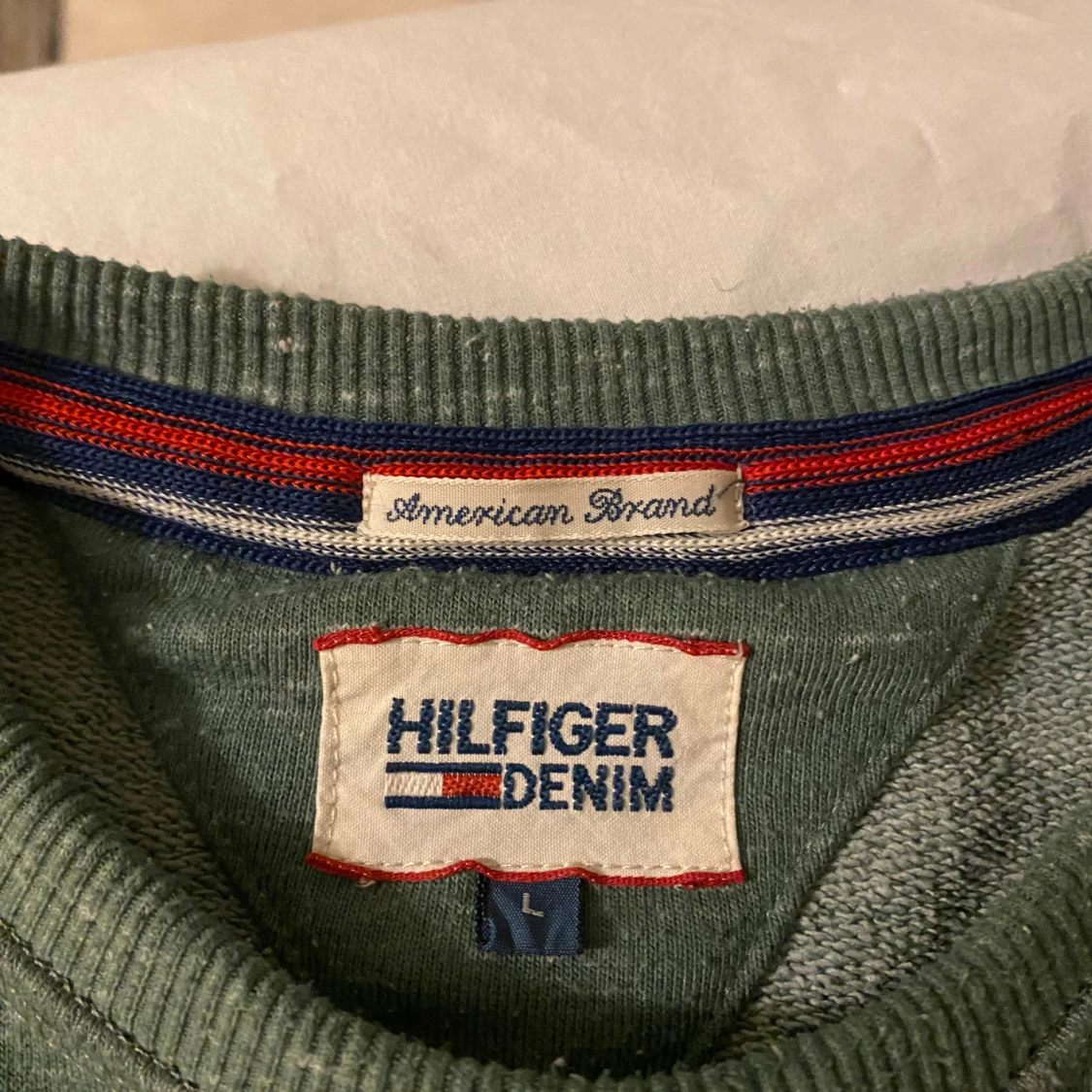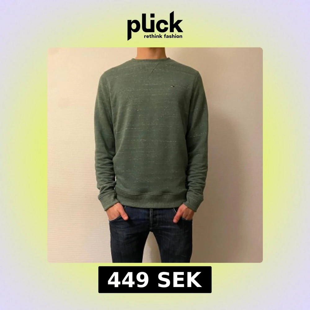 Säljer en stilren grön tröja från Tommy Hilfiger med diskret logga på bröstet. Storlek L men passar mer som M. Tröjan har långa ärmar och en normal passform, perfekt för en avslappnad look. Passar bra till jeans eller chinos.