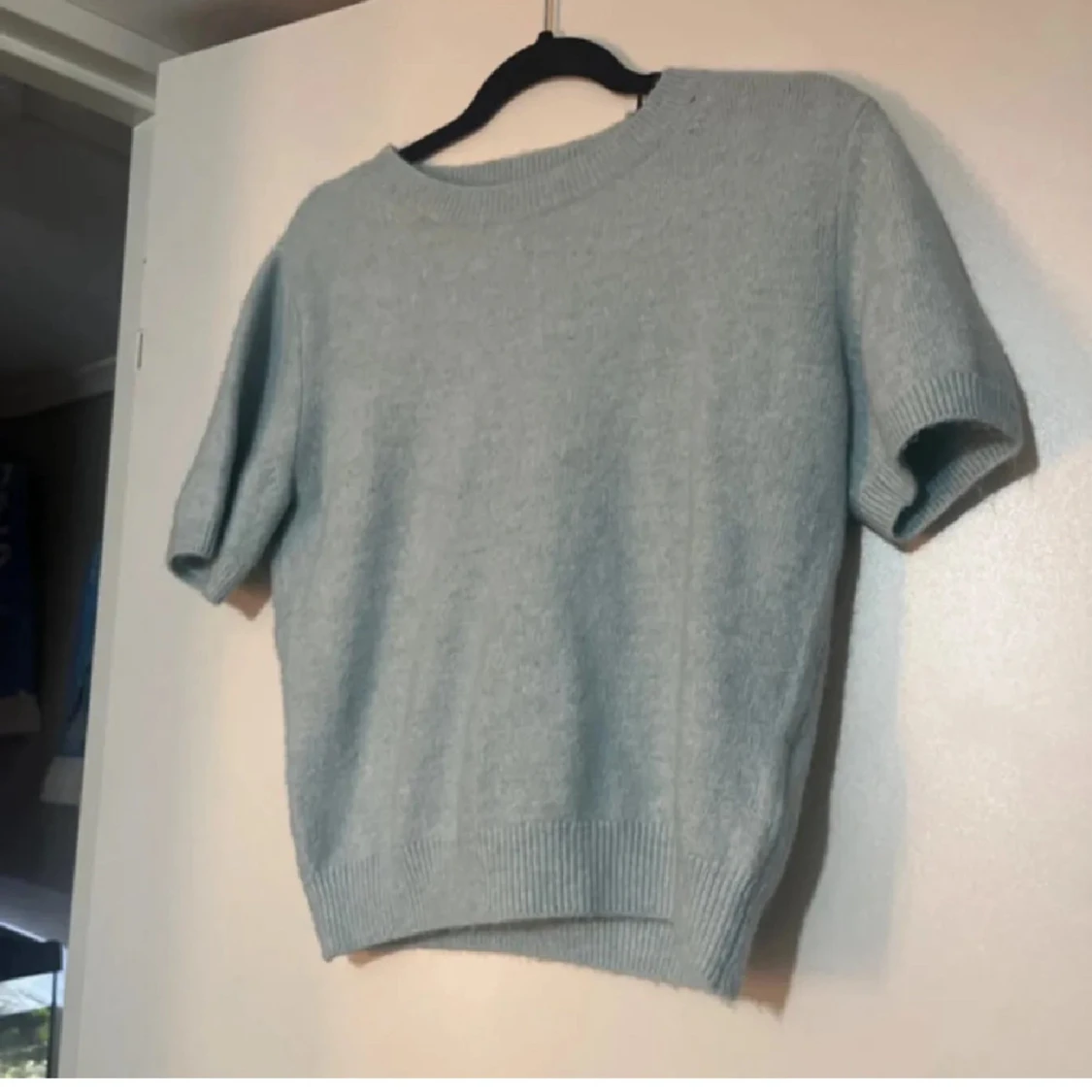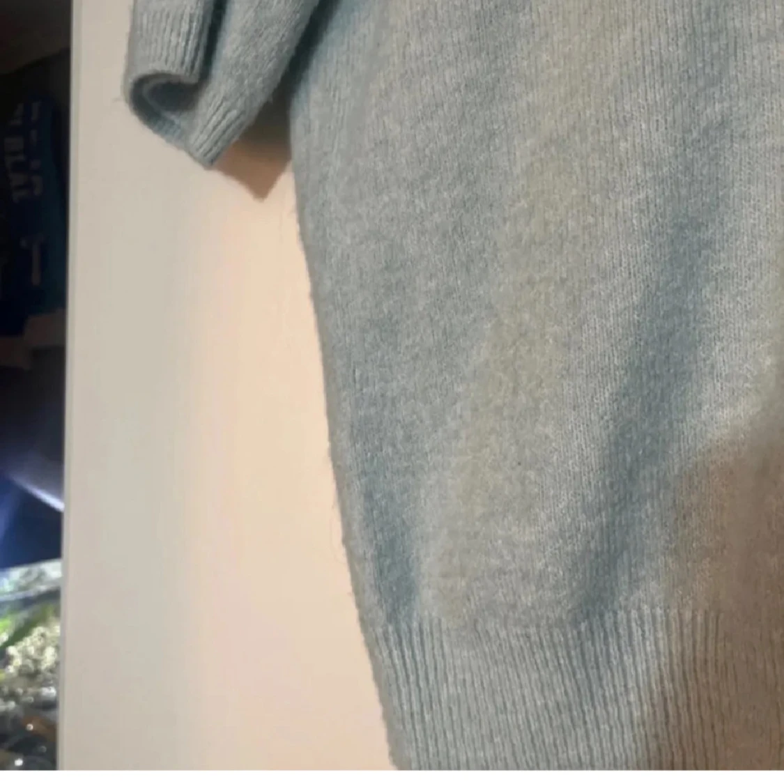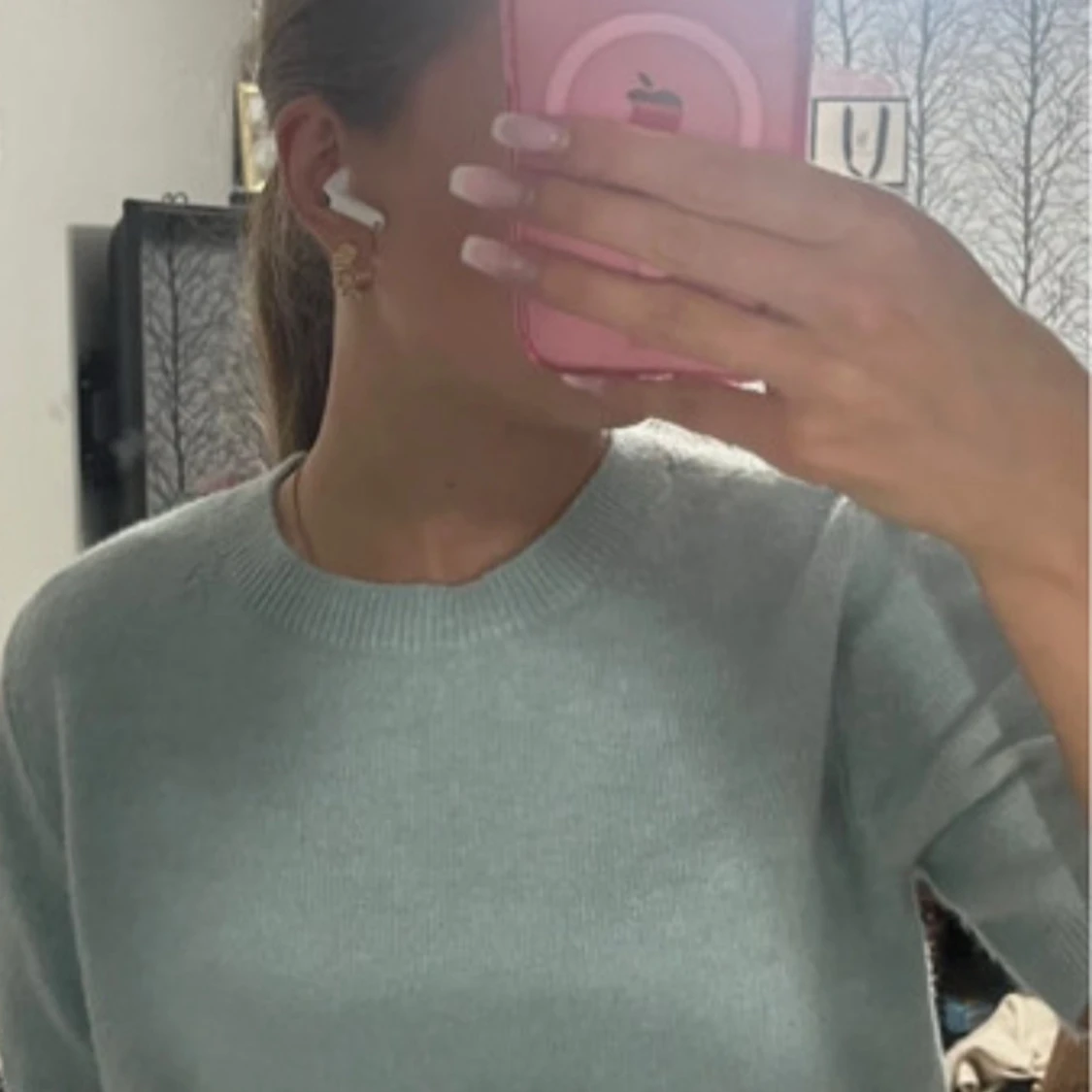 Stickad trekvartsärm tröja som är mint grön i färgen, köpt på H&M i Danmark för 179DKK, aldrig använd bara legat i garderoben för jag trodde den skulle komma till användning 🩷