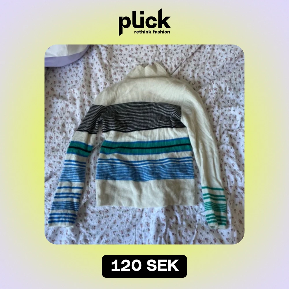 Säljer en snygg randig polotröja från Zara i storlek L, skulle dock säga att den passar någon med storlek S. Tröjan har en cool mix av färger med svart, blått, grönt och beige. Den är ribbad och har långa ärmar, perfekt för höst och vinter. Supermysig och stilren!