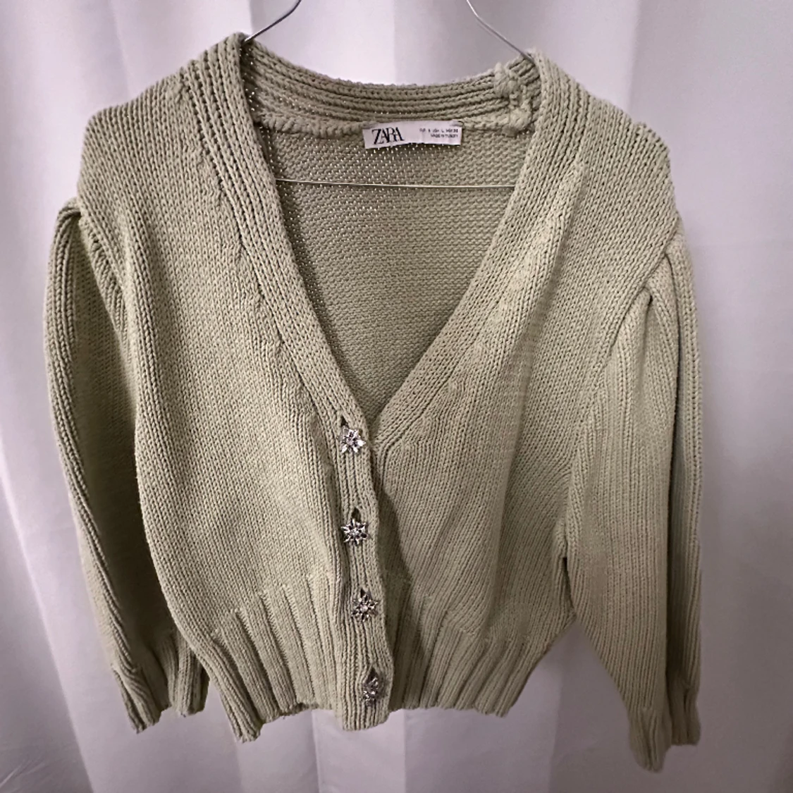 Jag säljer nu min gröna och fina stickade kofta från Zara! Den är använd någon få gång och är i perfekt skick. Den har inga defekter och passar perfekt till våren och sommaren💗