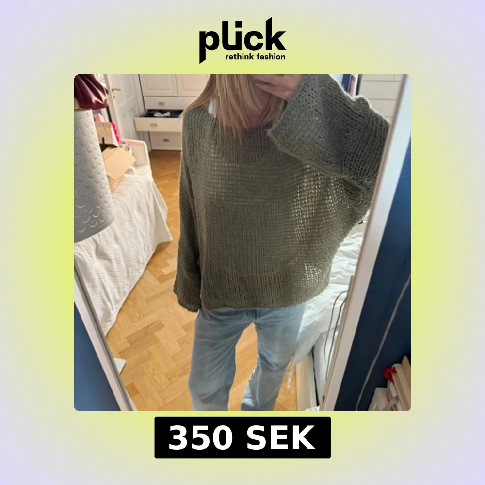 Säljer en kahki grön stickad tröja från SassyClassy, made in Italy. Tröjan har en loose passform, grovstickad struktur och långa ärmar.