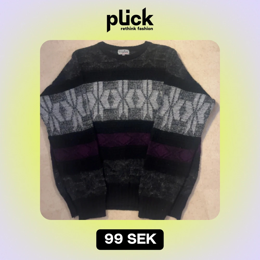 Säljer en mysig stickad tröja från St. John’s Bay i grått, svart och lila. perfekt för kyliga dagar. Denise inga defekter. Den har en boxy passform för tjejer och killar. Perfekt för höst och vinter!❄️❗️inspo de 3 sista bilderna❗️